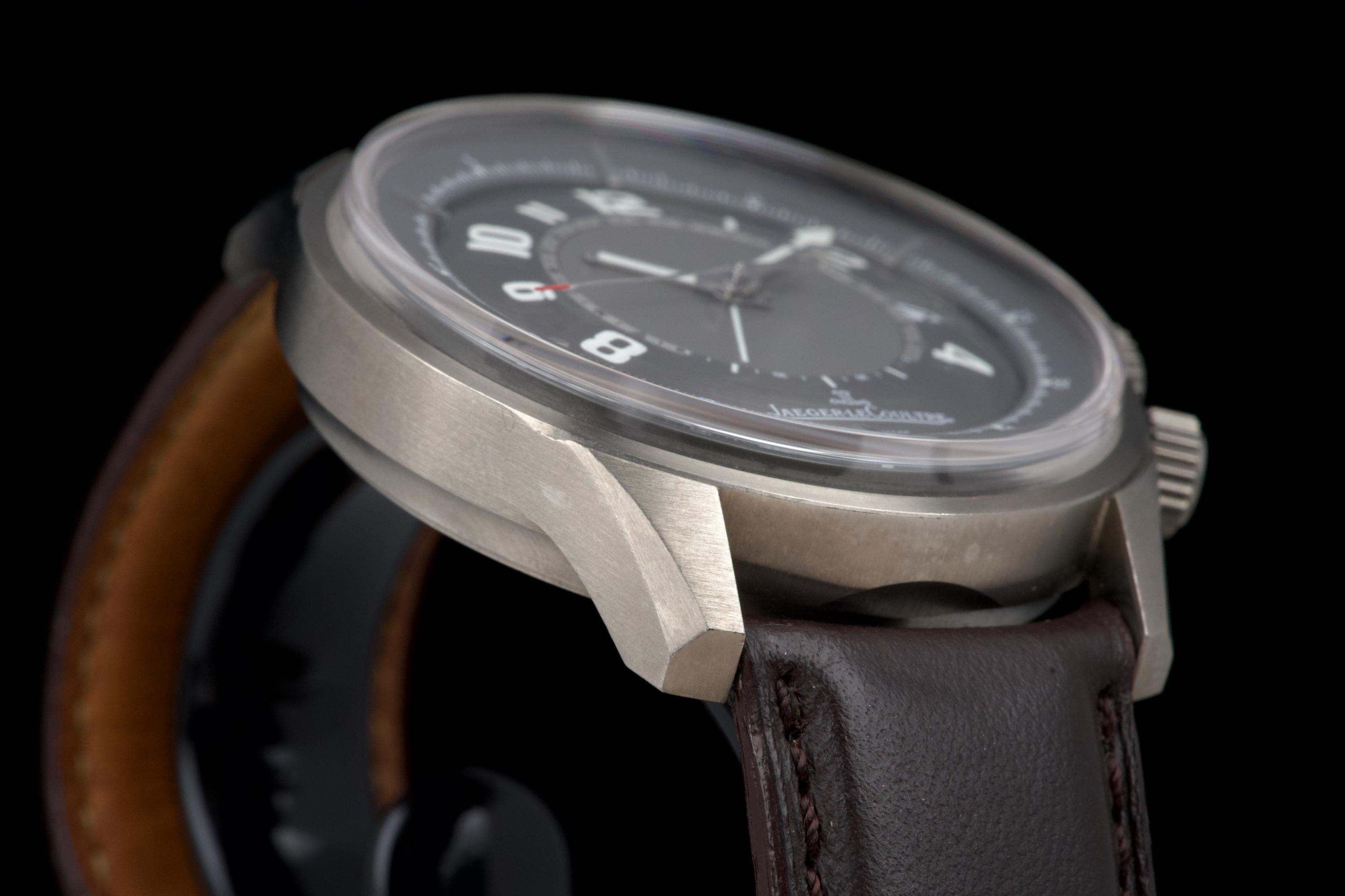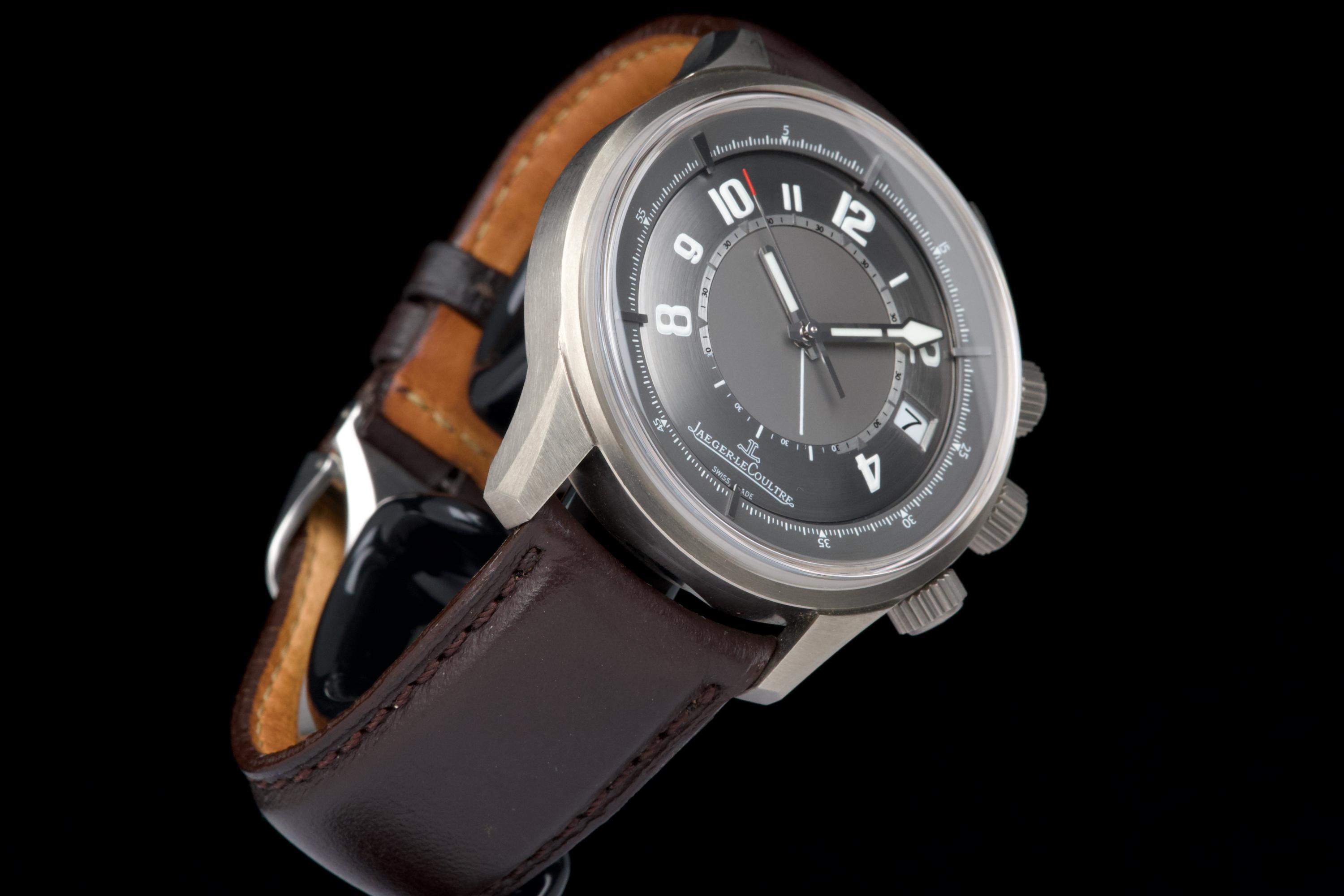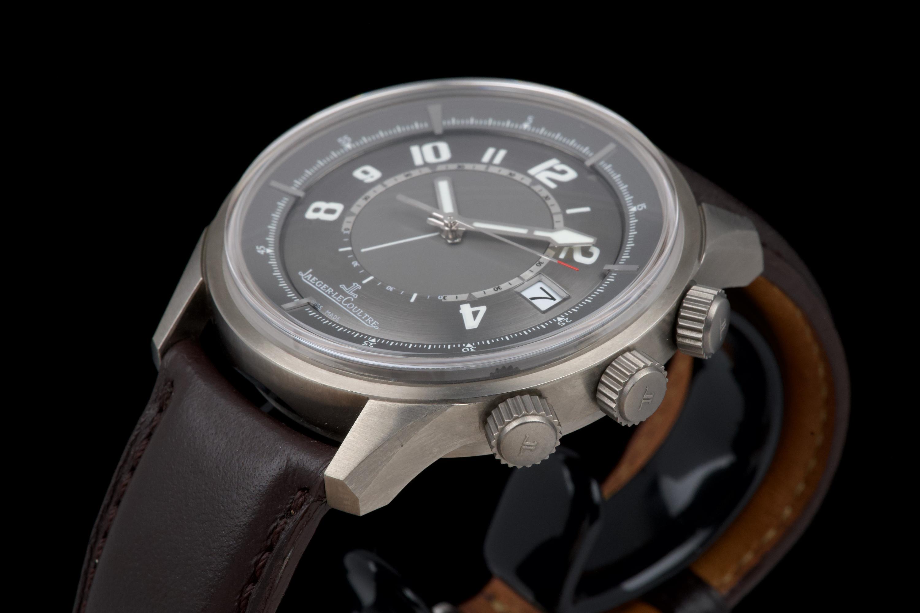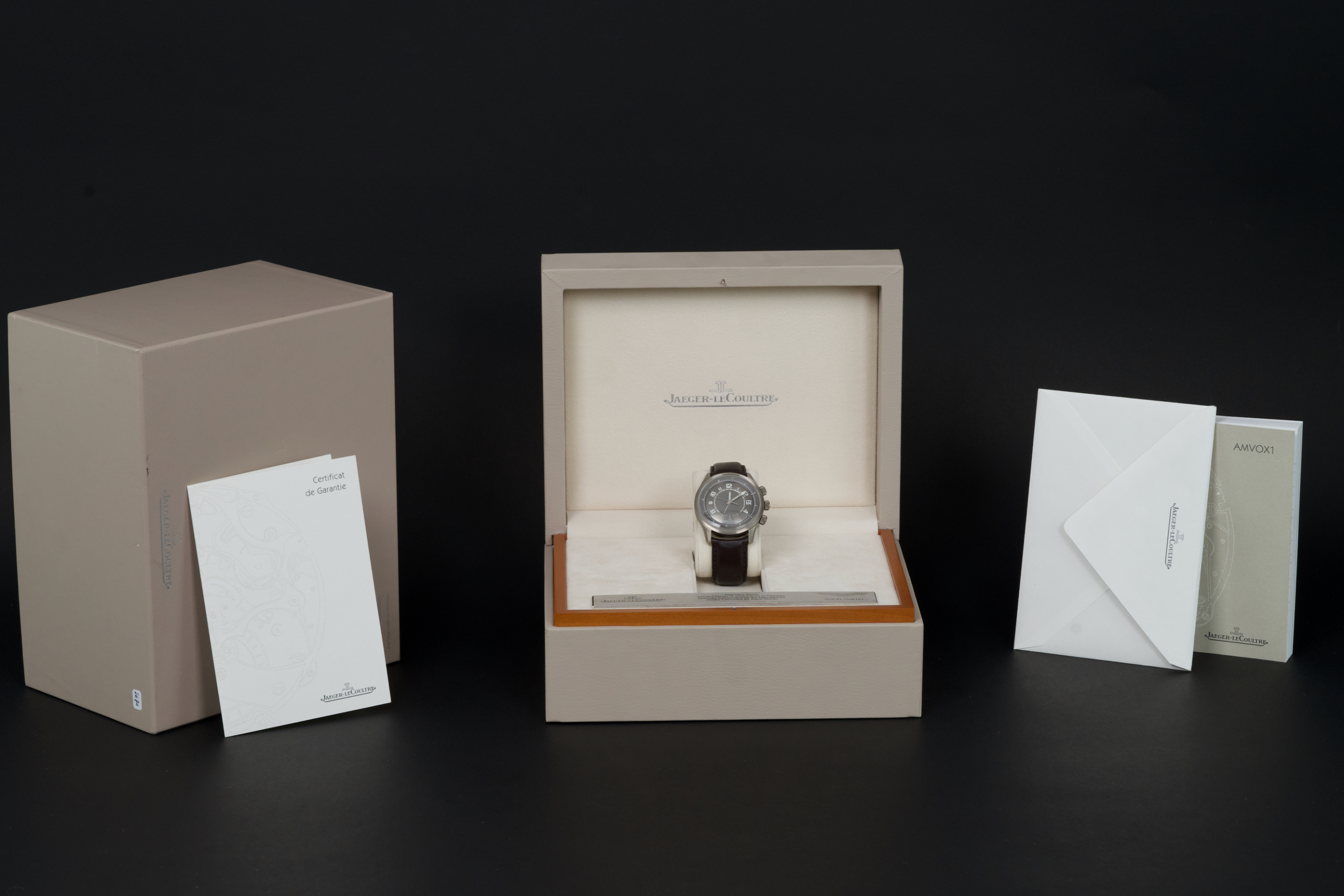 The present Jaeger-LeCoultre AMVOX 1 Aston Martin, crafted in titanium and measuring 42 mm, is an iconic example of the early collaboration between Jaeger-LeCoultre and Aston Martin. Introduced in the mid-2000s, the AMVOX collection combined high-performance watchmaking with the spirit of British automotive design, resulting in one of the most distinctive alarm watches of the modern era.This example dates to 2005 and is powered by the automatic Jaeger-LeCoultre calibre 918, featuring a mechanical alarm complication. The watch is offered with its original box and a blank guarantee card. It shows no known service history, however the movement is running perfectly and the alarm function operates correctly. The titanium case remains in excellent overall condition, presenting beautifully with only light signs of wear consistent with careful use. A highly attractive and collectible example of the Jaeger-LeCoultre AMVOX 1, combining innovative engineering, automotive inspiration, and one of the most interesting mechanical alarm systems produced in modern watchmaking.