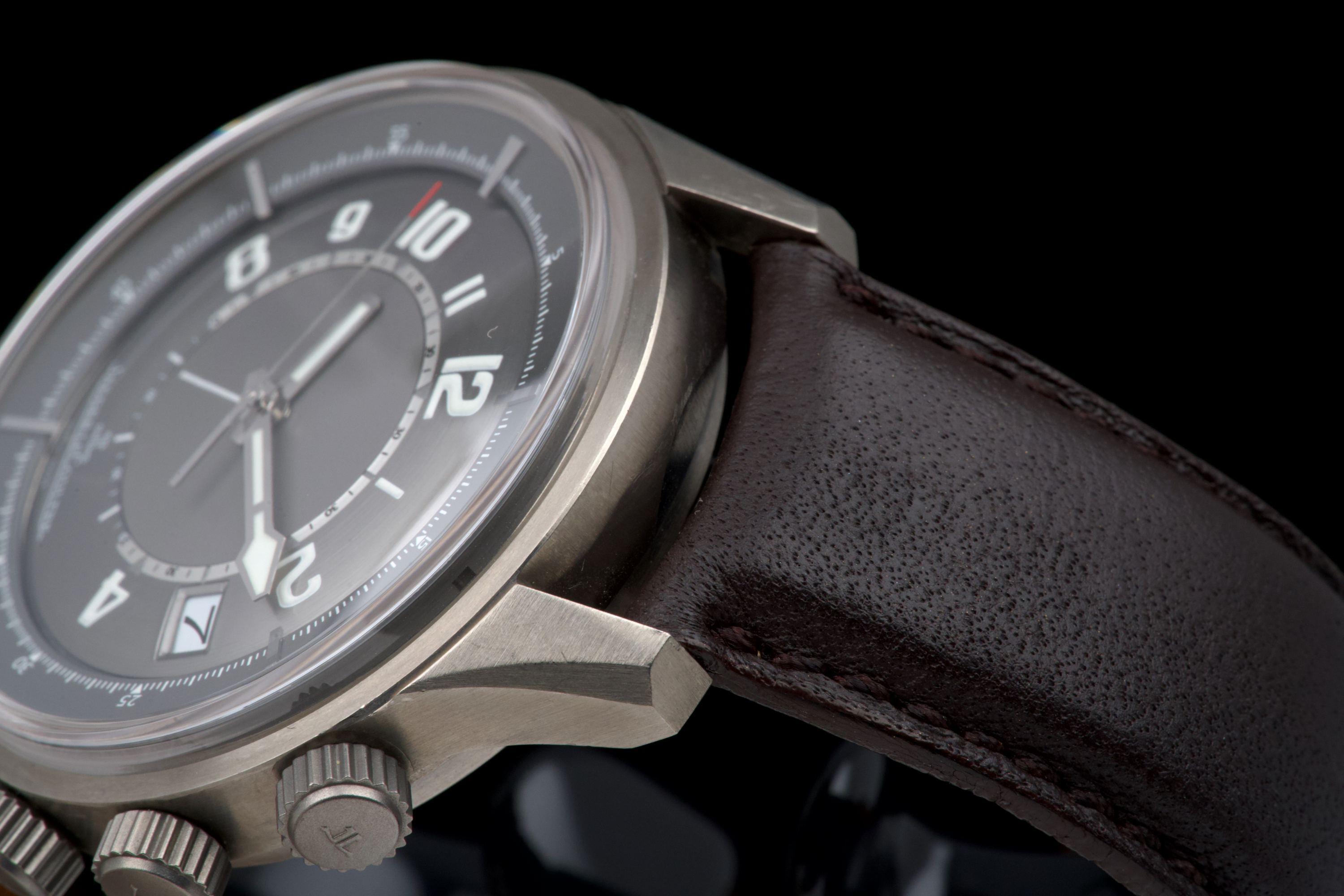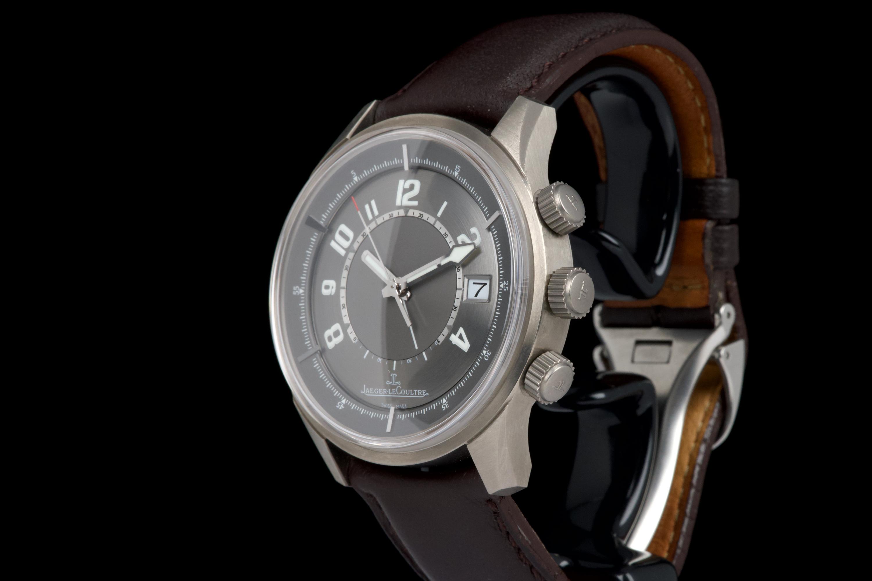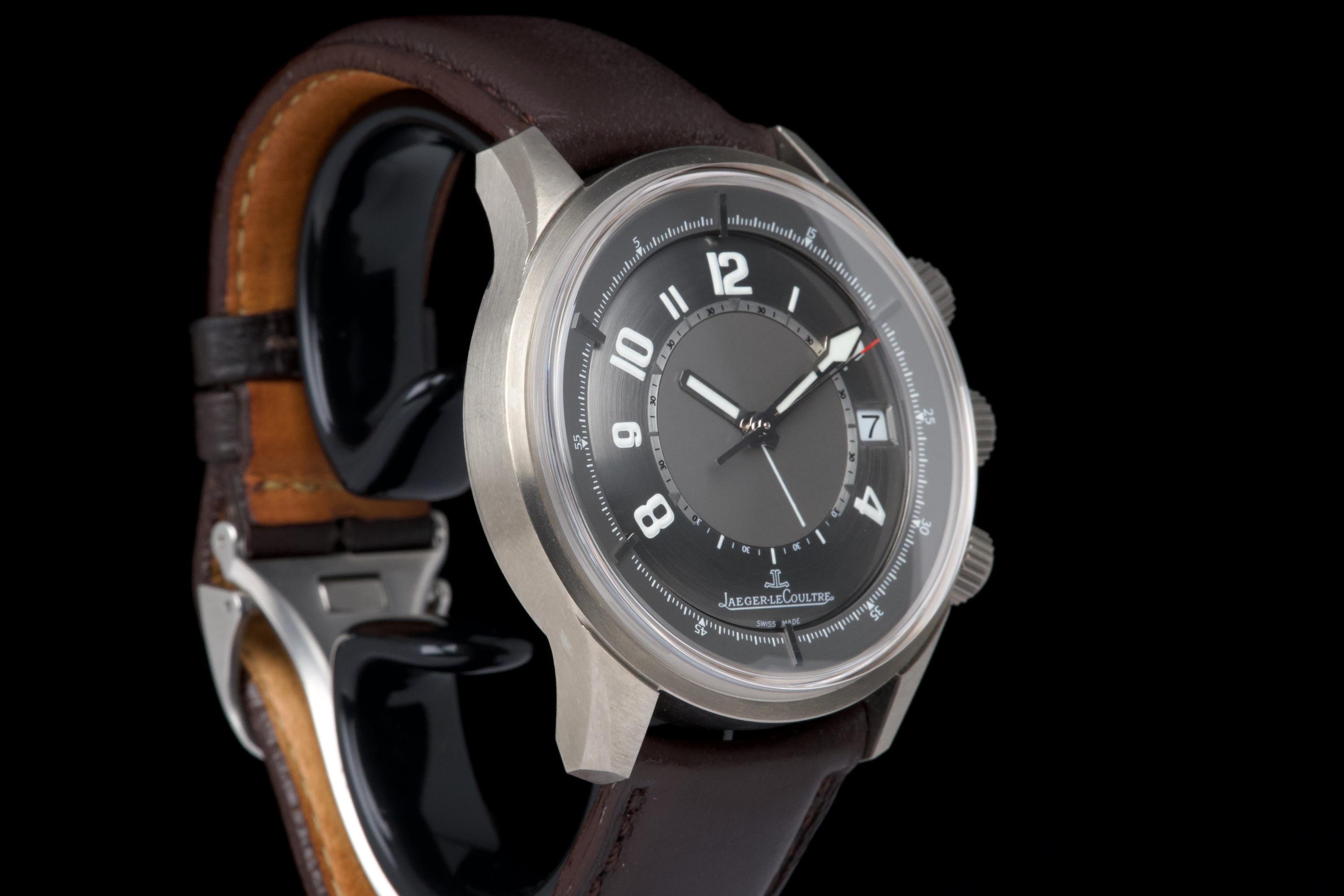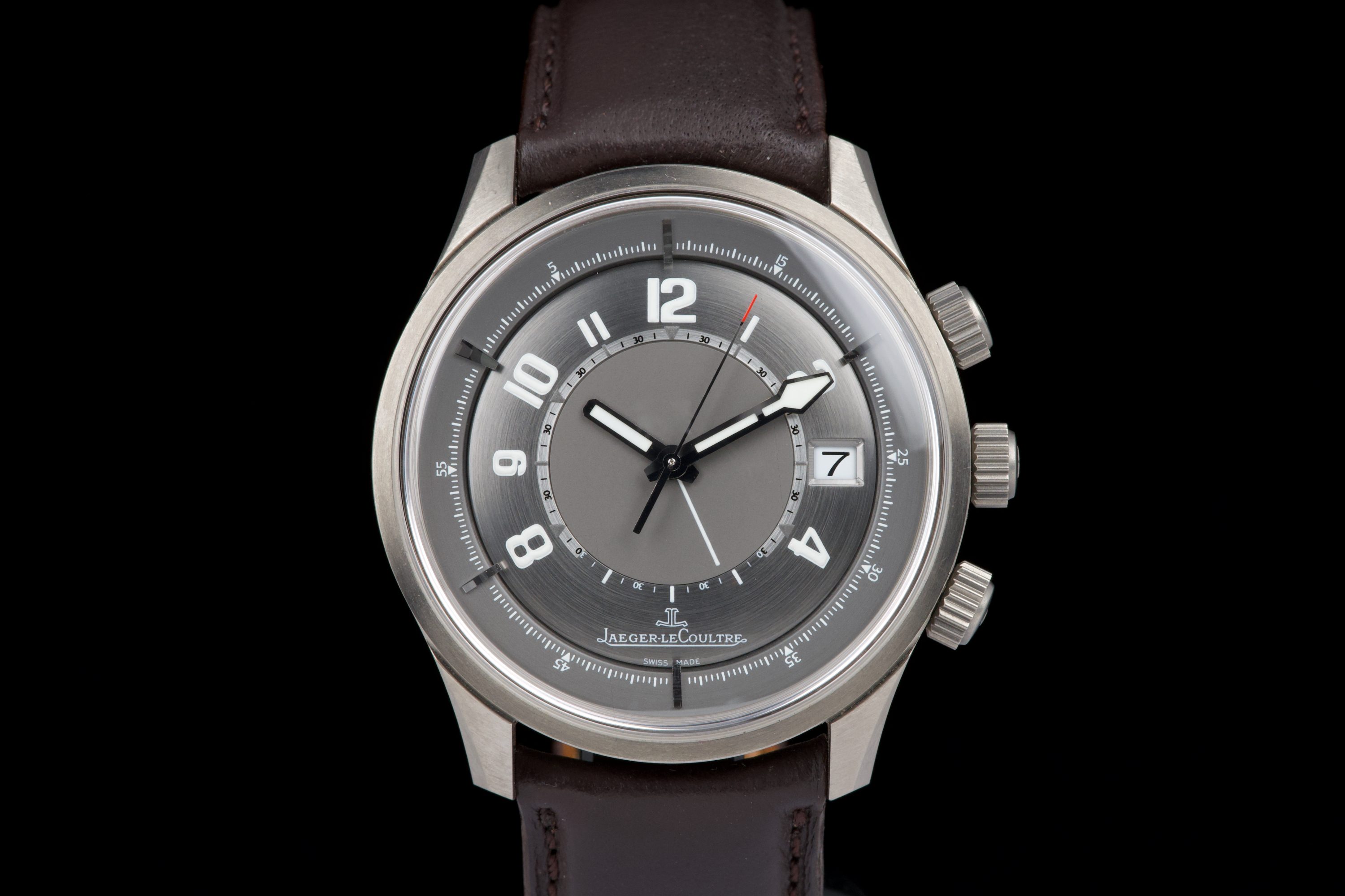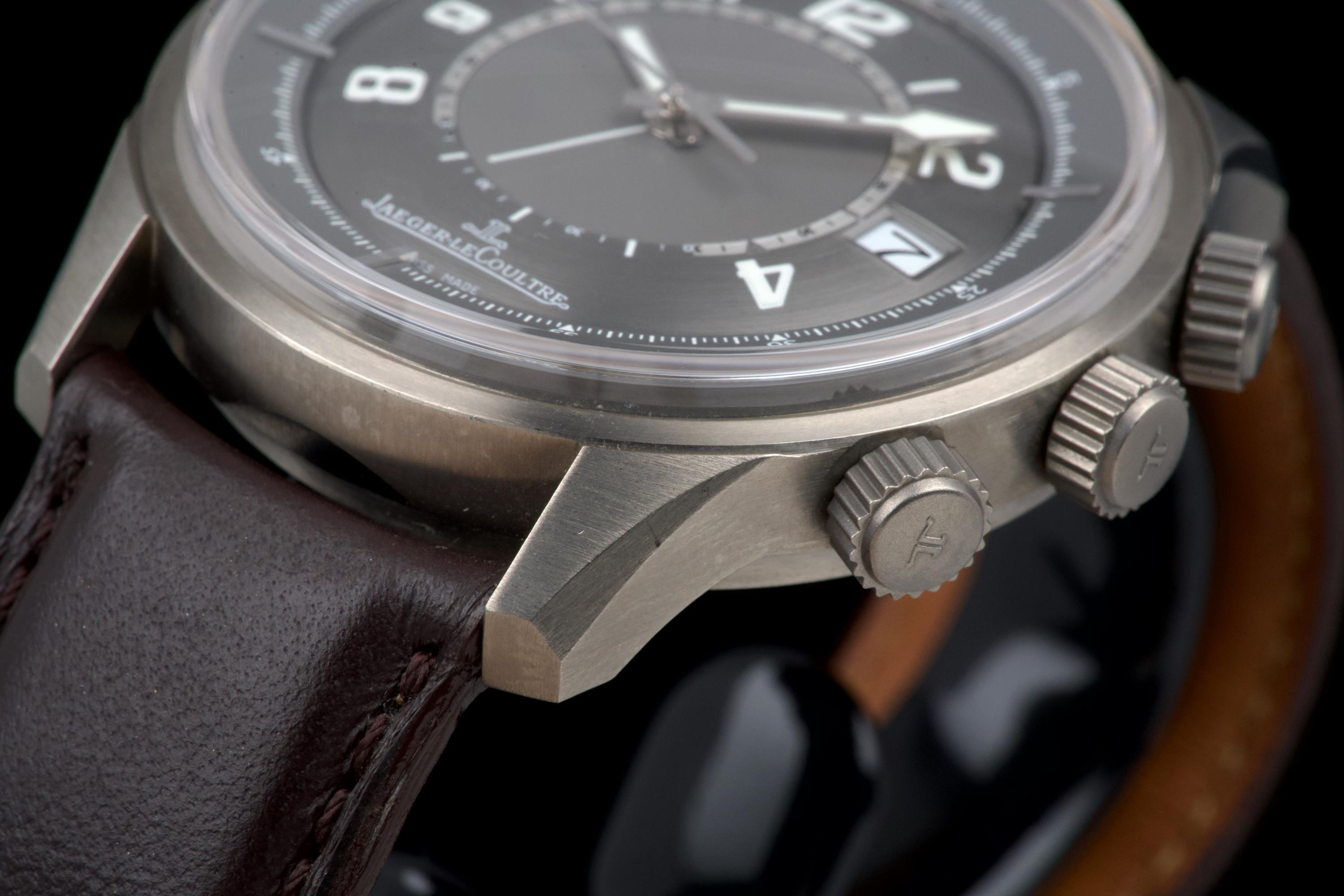 The present Jaeger-LeCoultre AMVOX 1 Aston Martin, crafted in titanium and measuring 42 mm, is an iconic example of the early collaboration between Jaeger-LeCoultre and Aston Martin. Introduced in the mid-2000s, the AMVOX collection combined high-performance watchmaking with the spirit of British automotive design, resulting in one of the most distinctive alarm watches of the modern era.This example dates to 2005 and is powered by the automatic Jaeger-LeCoultre calibre 918, featuring a mechanical alarm complication. The watch is offered with its original box and a blank guarantee card. It shows no known service history, however the movement is running perfectly and the alarm function operates correctly. The titanium case remains in excellent overall condition, presenting beautifully with only light signs of wear consistent with careful use. A highly attractive and collectible example of the Jaeger-LeCoultre AMVOX 1, combining innovative engineering, automotive inspiration, and one of the most interesting mechanical alarm systems produced in modern watchmaking.