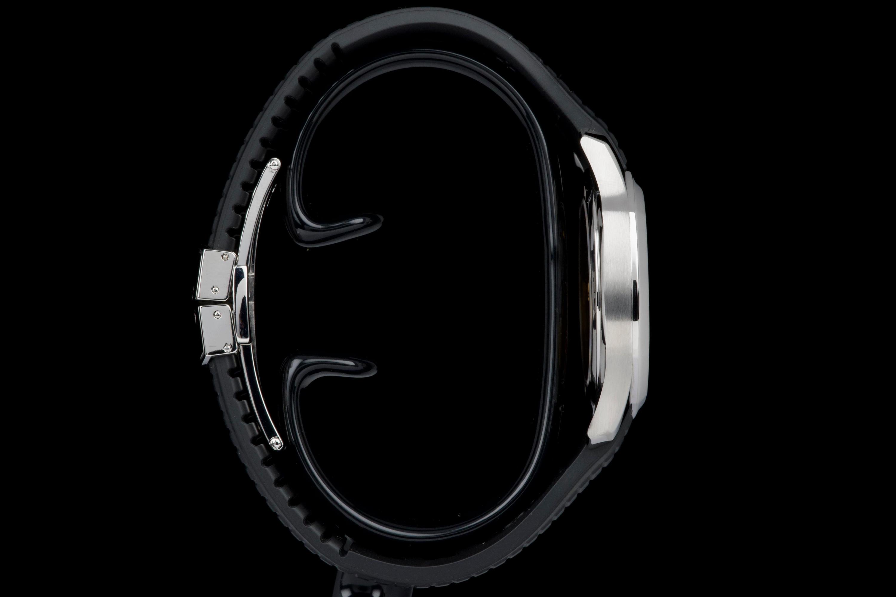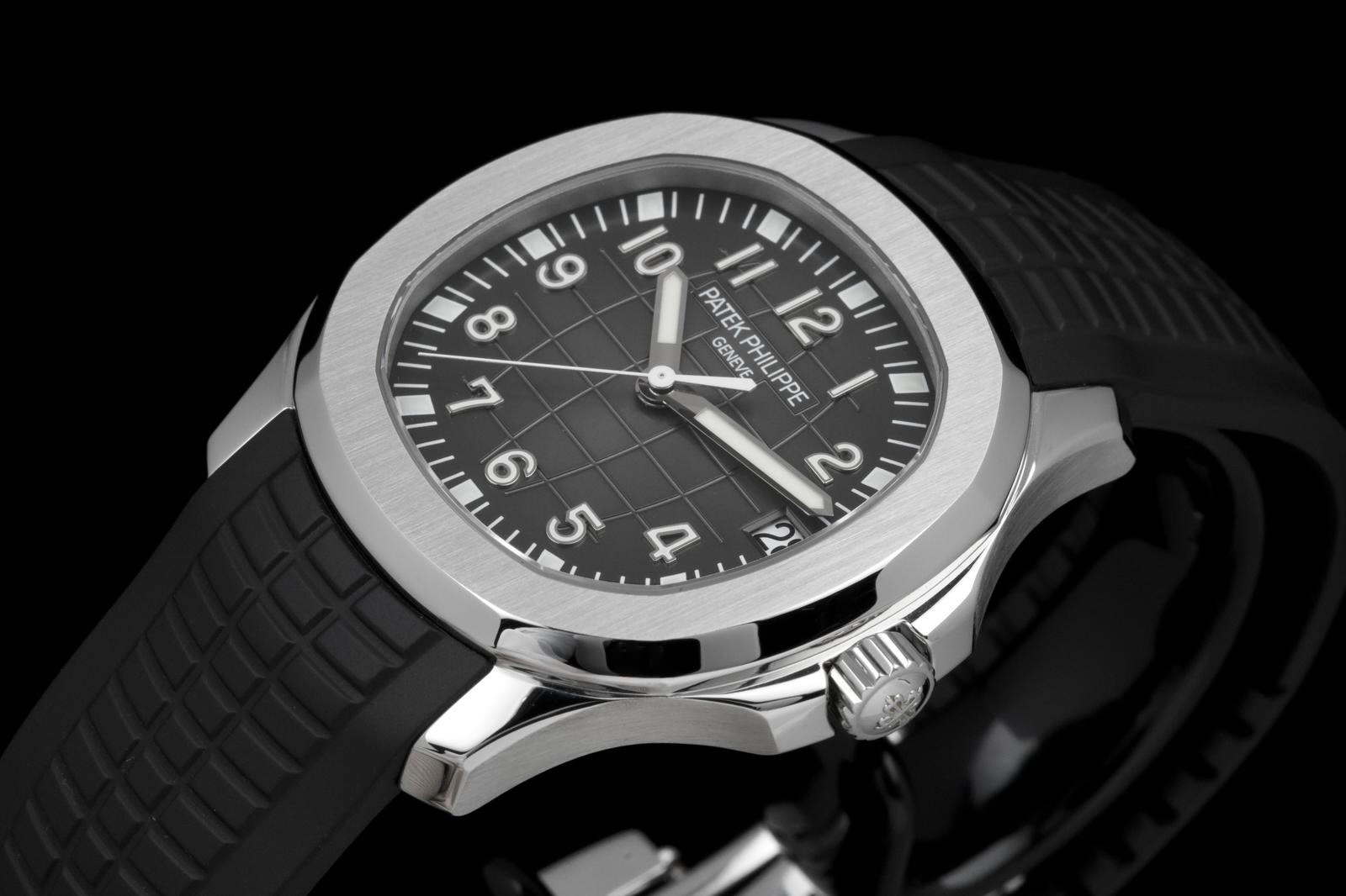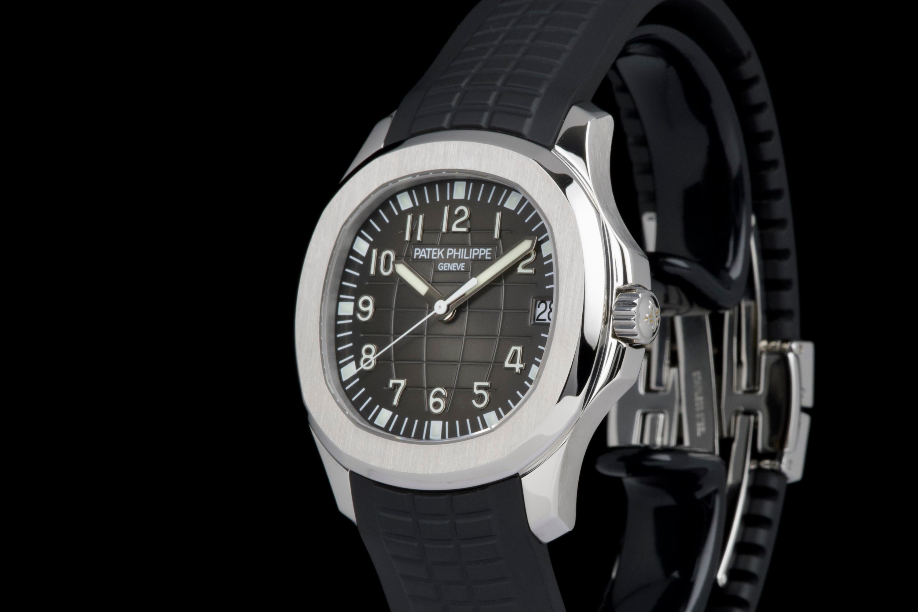 Presented here is a rare and highly appealing example of the Patek Philippe Aquanaut reference 5165, the so-called “Jumbo” Aquanaut, distinguished by its elegant 38mm case. Produced in 2009, this short-lived reference is particularly sought after for its balanced proportions, bridging the gap between the original Aquanaut and later, larger iterations. The watch has been professionally polished by our watchmaker and today presents in very clean overall condition. The movement has been checked and is in proper working order. Accompanied by its original papers, booklets, and leather document holder, this example is offered without the original box. A refined and wearable expression of the Aquanaut line, this reference 5165 offers understated sport elegance and increasing collectability, making it an attractive opportunity for collectors seeking a rare and well-presented Patek Philippe sports watch.