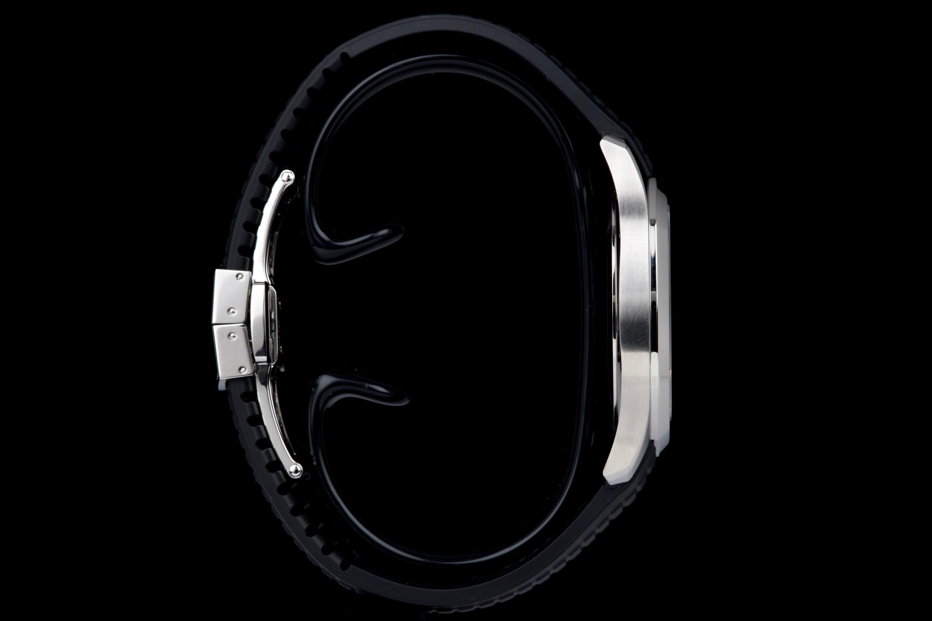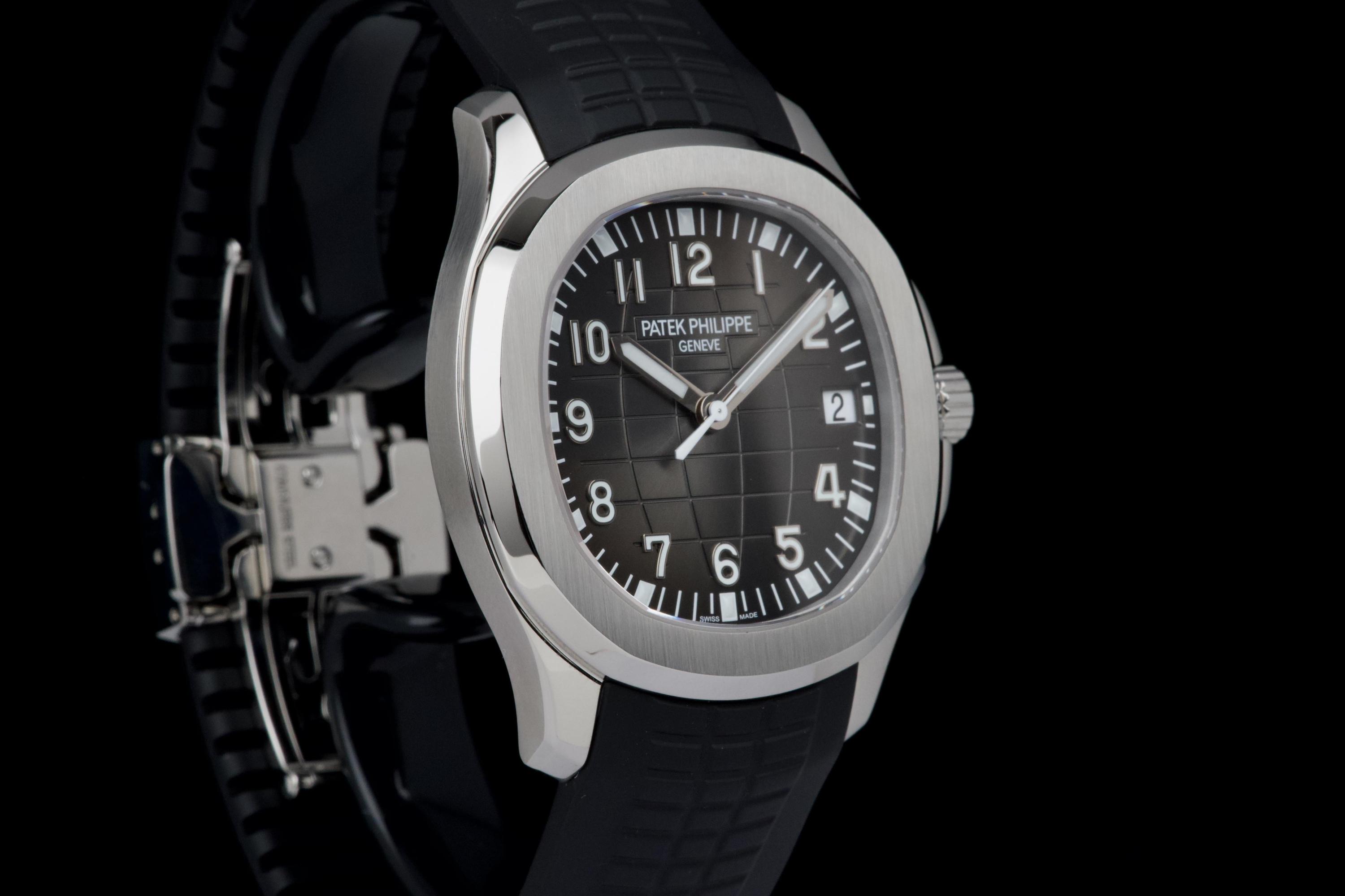 The Patek Philippe Aquanaut reference 5167A-001, one of the brand’s most iconic and sought-after contemporary sport models, is offered here as a complete full set dating to 2026 and presented in unworn condition. The watch features a 40.8 mm stainless steel case with a slim and well-balanced profile, combining sporty character with refined elegance. Its rounded octagonal bezel and alternating polished and satin-brushed finishes create the distinctive aesthetic that defines the Aquanaut collection. It is fitted with the signature black embossed dial with “grenade” pattern, adding depth and texture while maintaining excellent legibility, complemented by applied Arabic numerals and luminescent hands, as well as a date display at 3 o’clock. Powered by the in-house automatic calibre 26-330 SC, the watch delivers reliable and precise performance in line with Patek Philippe’s exacting standards. It is presented on its original black composite “Tropical” strap, offering exceptional comfort and durability. Preserved in like-new, unworn condition, this Aquanaut is offered with its full original set including box, warranty papers, and accessories, representing an outstanding opportunity to acquire a highly desirable modern Patek Philippe in pristine condition.