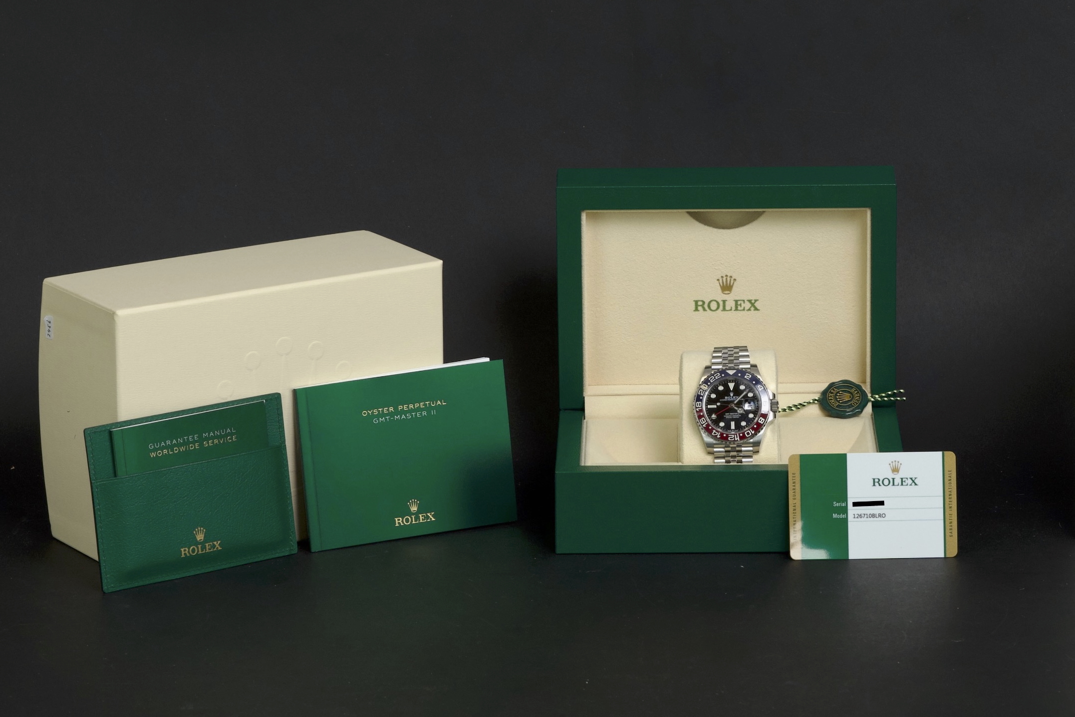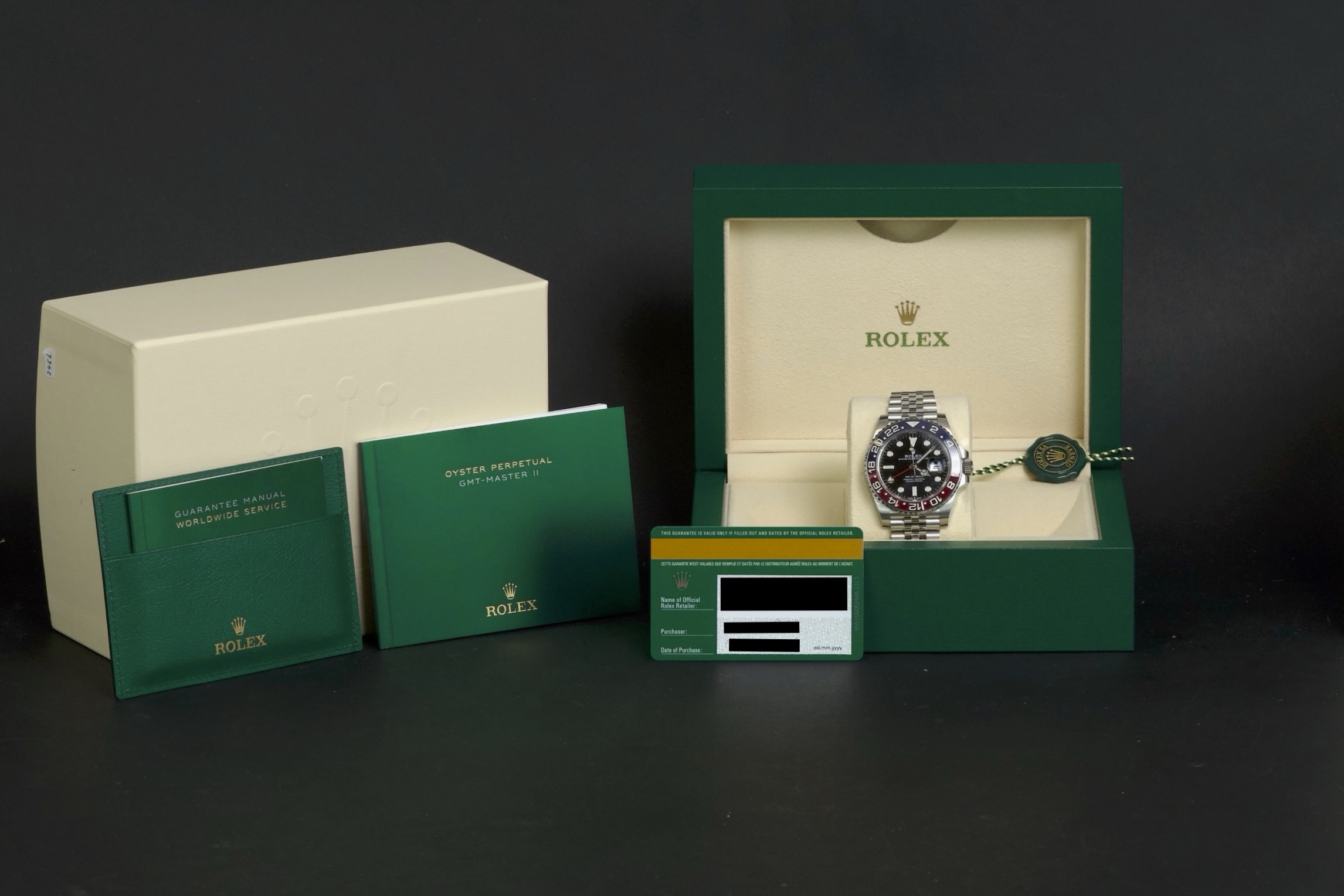 Rolex GMT-Master II “Pepsi” 126710BLRO, Full Set 2020. The watch is fitted with the jubilee bracelet and has just been polished by our watchmaker, now presenting in excellent overall condition. Featuring the iconic red and blue Cerachrom bezel and black dial, this modern GMT-Master II combines Rolex’s legendary design with contemporary reliability. Complete with its original box, warranty card, booklets and tag. A highly desirable and timeless modern Rolex sports model.