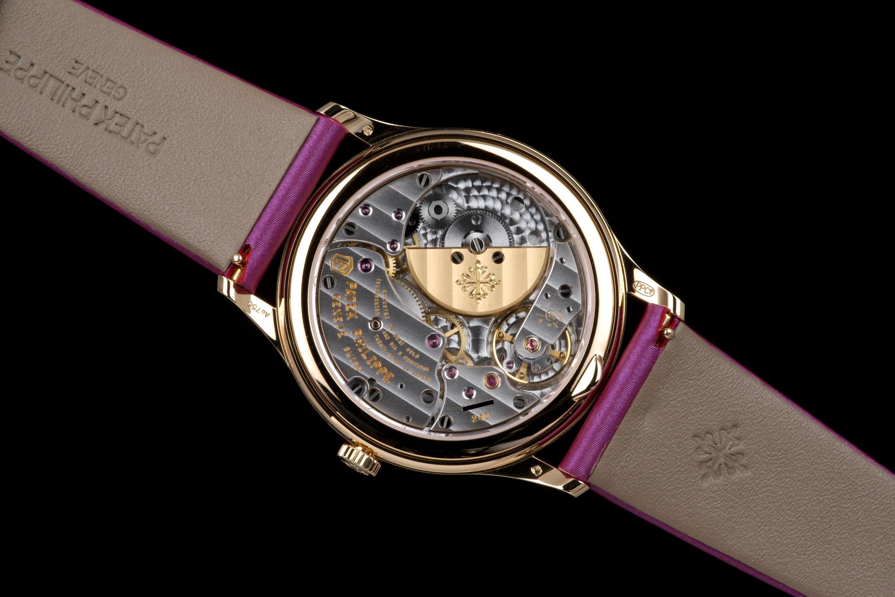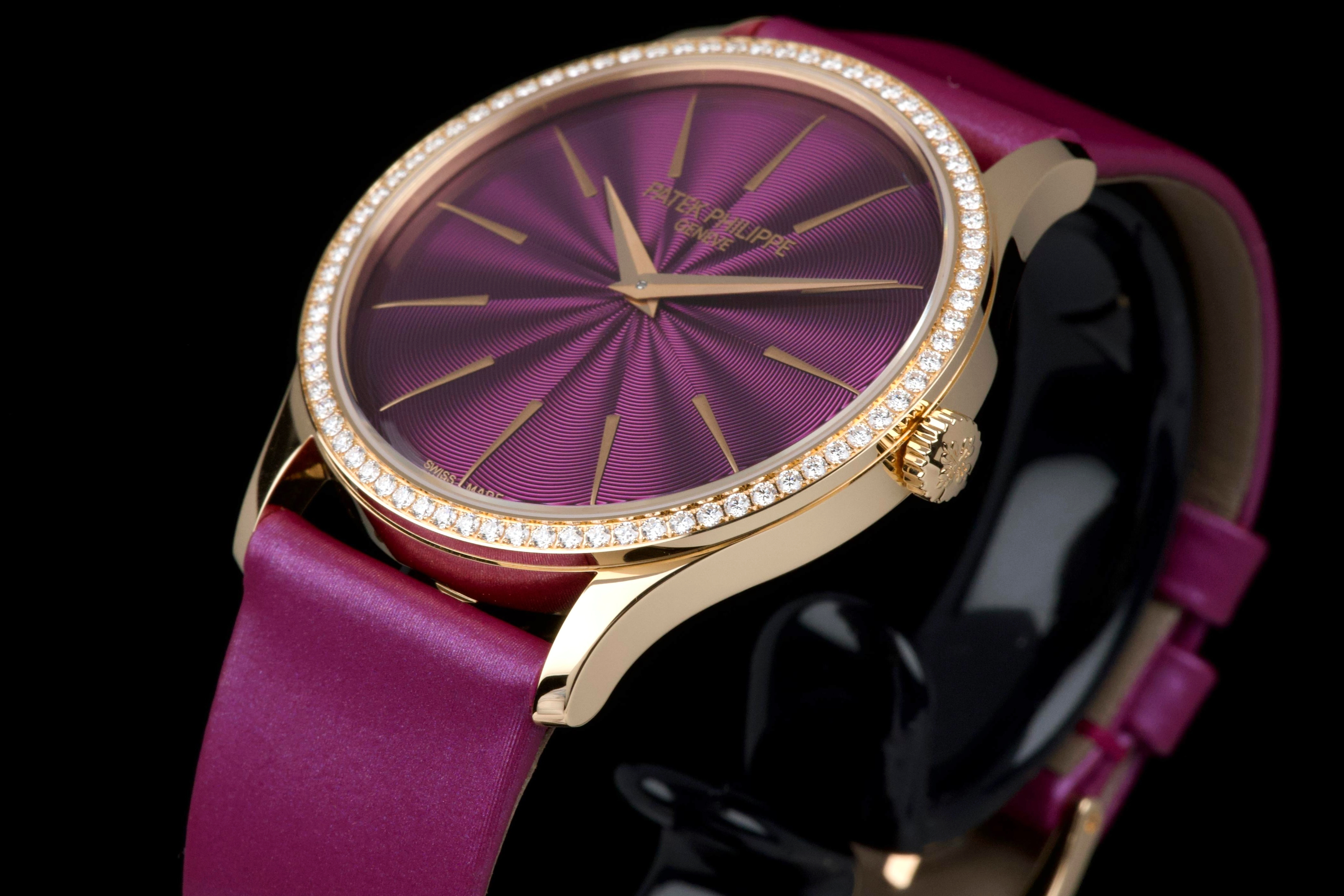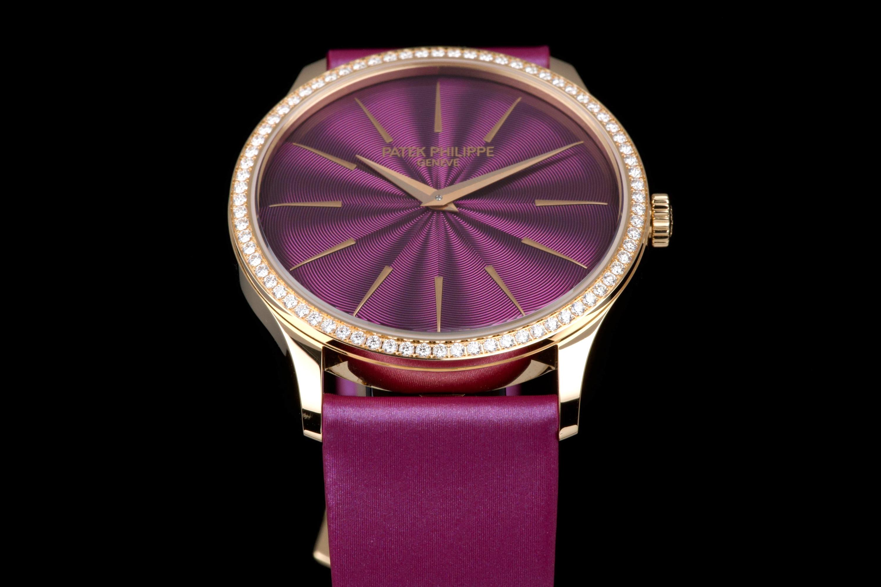 Presented here is an elegant and contemporary example of the Patek Philippe Lady Calatrava reference 4997/200R-001. Crafted in rose gold, this refined timepiece perfectly reflects Patek Philippe’s mastery of classic feminine watchmaking, combining timeless proportions with discreet luxury. This example dates to 2025 and is offered as a full set with its original box, papers, and accessories. Presented in close-to-new condition, the watch shows only the slightest signs of handling, preserving its crisp and refined overall appearance. The beautifully finished dial, enhanced by diamond hour markers and the signature hobnail-patterned bezel, offers a sophisticated and luminous presence on the wrist. A superb opportunity to acquire a nearly unworn example of a modern Lady Calatrava, combining elegance, craftsmanship, and enduring Patek Philippe refinement.