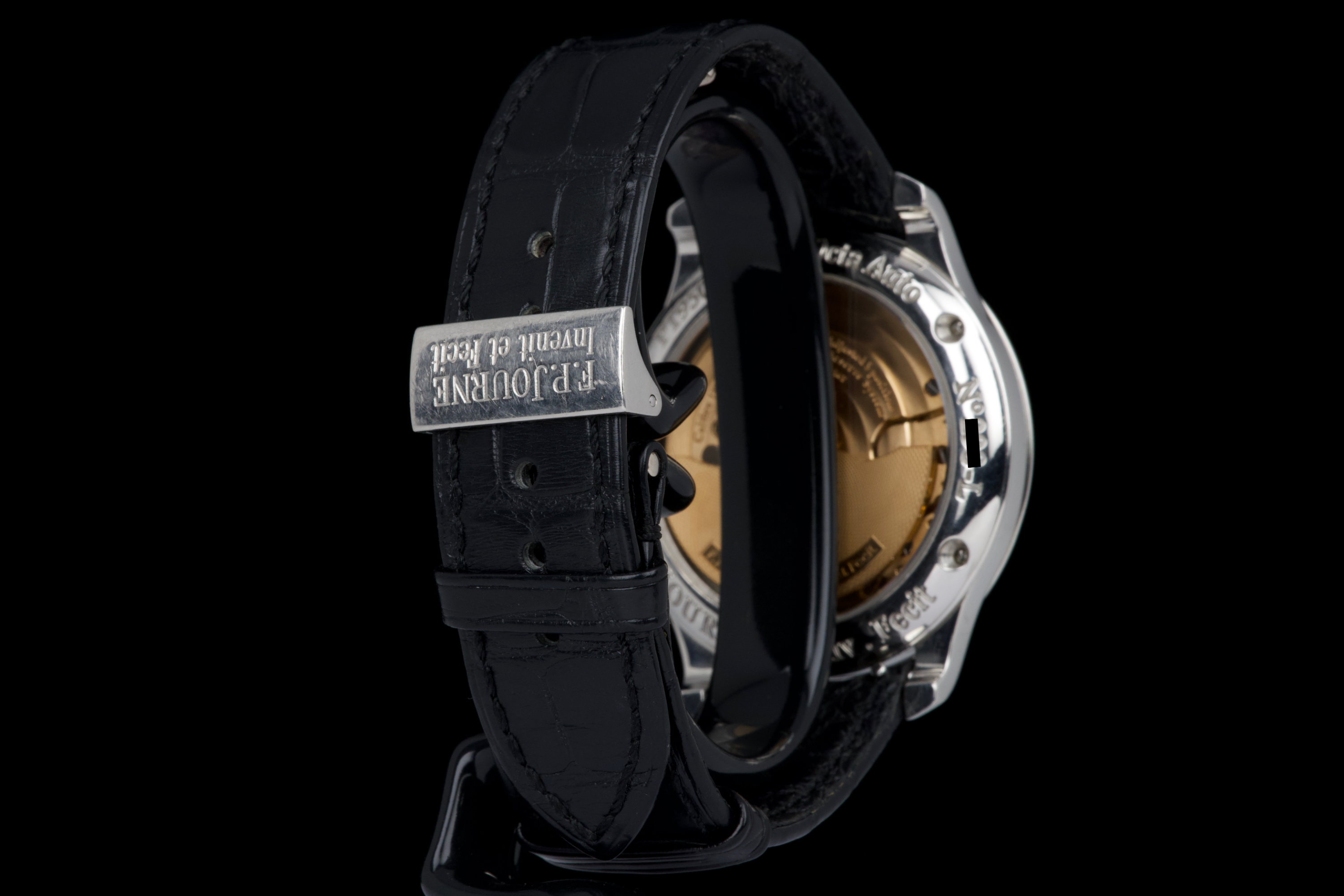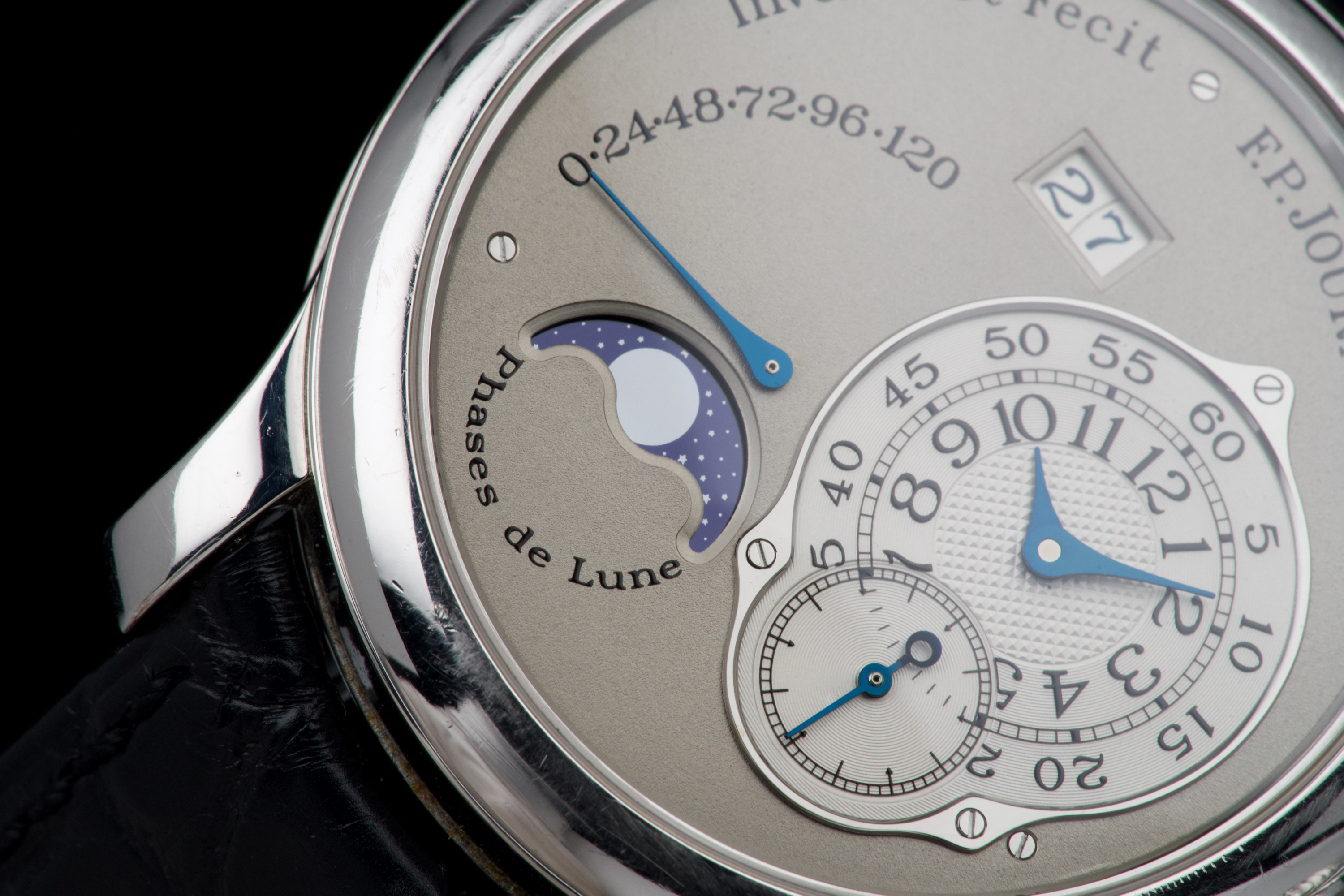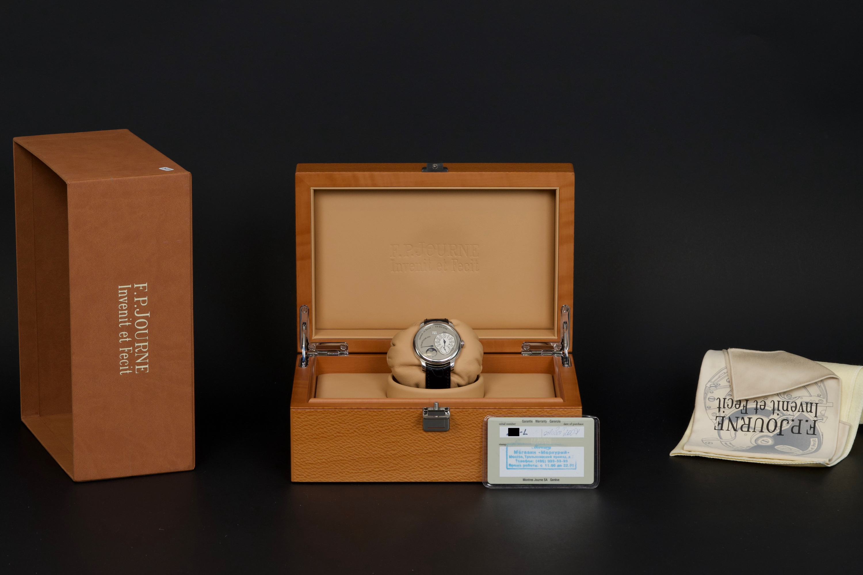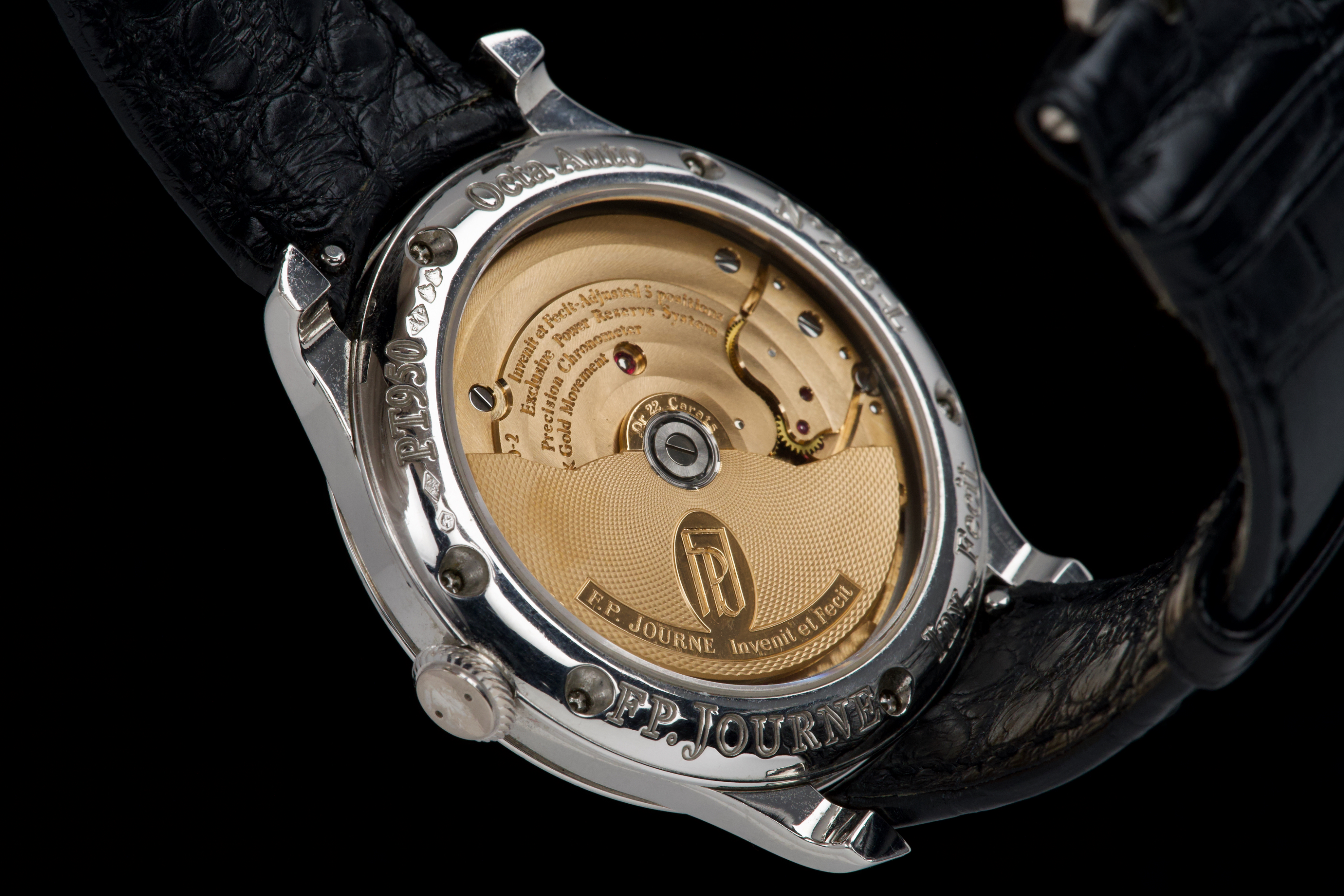 A well-preserved and honest example of the F.P. Journe Octa Lune in platinum with grey dial, sold new in Moscow in 2007. The watch remains unpolished, showing numerous surface scratches from wear, yet no deep dents or damage to the case. The dial is flawless, displaying the elegant and balanced layout typical of the early Octa series. Powered by the automatic F.P. Journe caliber 1300.2, crafted in solid 18K rose gold, and in perfect working order. Complete with its original box and papers. A superb early Octa Lune in platinum — unpolished, fully original, and with beautiful provenance from the Mercury Moscow boutique.
