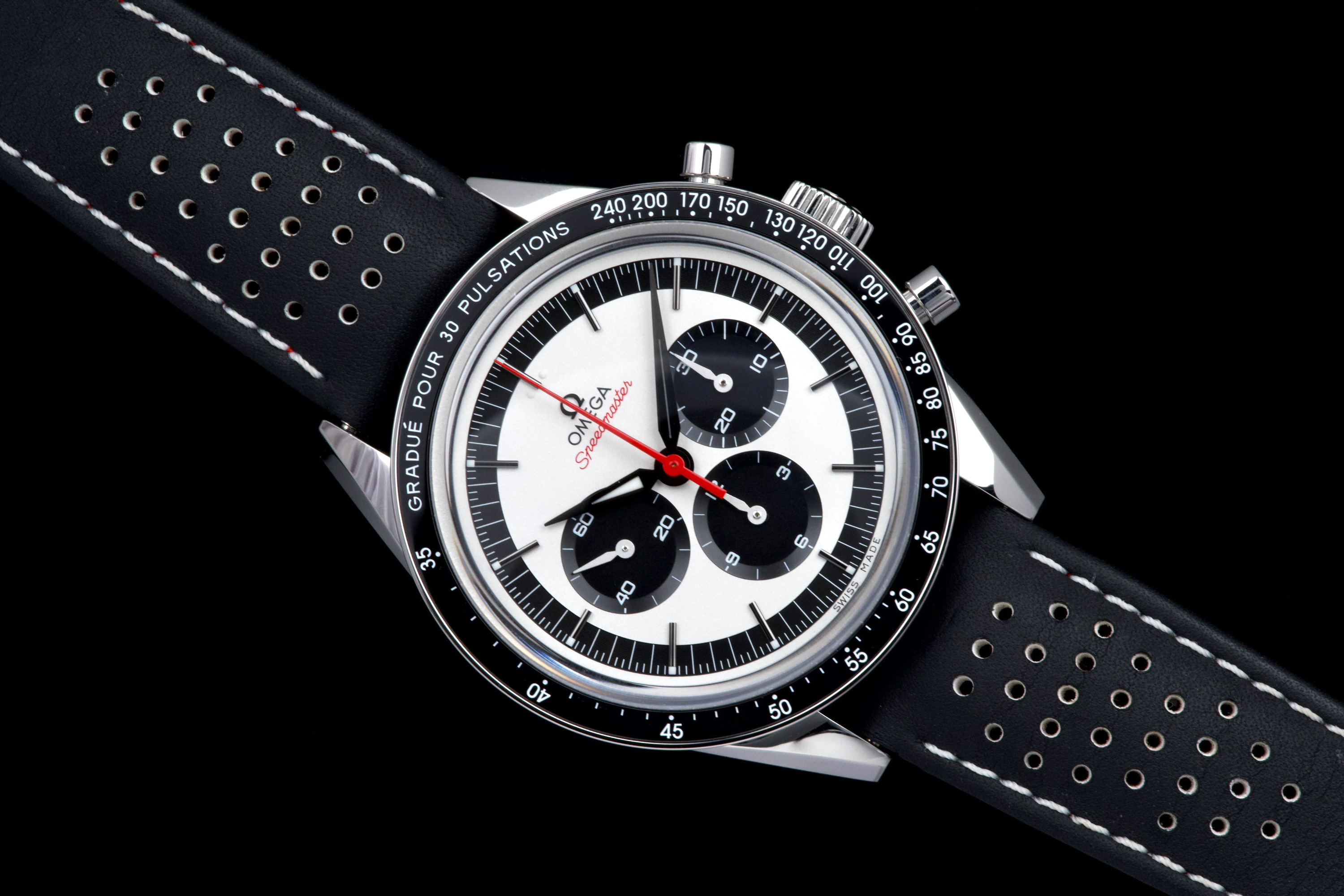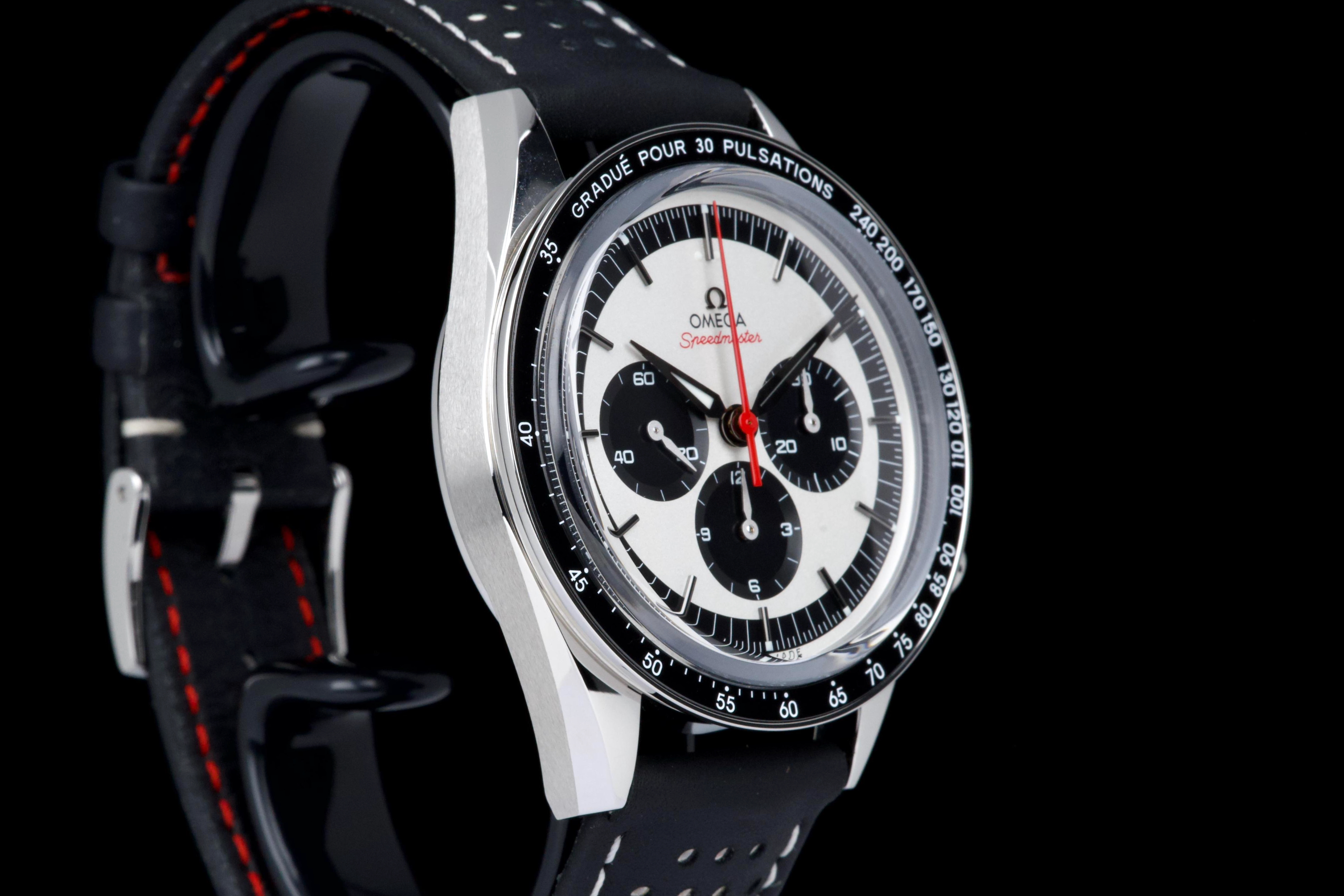 The present Omega Speedmaster Professional Moonwatch “CK2998” reference 311.23.40.30.02.001, dating to 2019, is a highly attractive and collectible limited-edition reinterpretation of one of the earliest Speedmaster references. Offered as a complete full set and coming from the original owner, this watch combines strong provenance with excellent overall condition, showing only very light wear from use. Inspired by the historic CK2998 of 1959, this modern tribute features a 39.7 mm stainless-steel case, closely reflecting the proportions of the original model and offering a refined vintage presence on the wrist. The watch is part of a limited edition of 2,998 pieces, a direct reference to the original CK2998 designation, making it particularly appealing to Speedmaster collectors. The dial features a beautiful silvered opaline finish with contrasting blue sub-dials, complemented by alpha-style handsand a blue ceramic tachymeter bezel, all details inspired by early Speedmaster aesthetics. These elements give the watch a distinctive vintage character while maintaining modern build quality. The watch is powered by Omega’s renowned manual-winding chronograph movement, derived from the Moonwatch lineage and celebrated for its robustness and reliability. Delivered as a full set from 2019 and preserved in excellent condition with single-owner provenance, this Speedmaster CK2998 limited edition represents a compelling opportunity to acquire a historically inspired Moonwatch with strong collectability and timeless design.