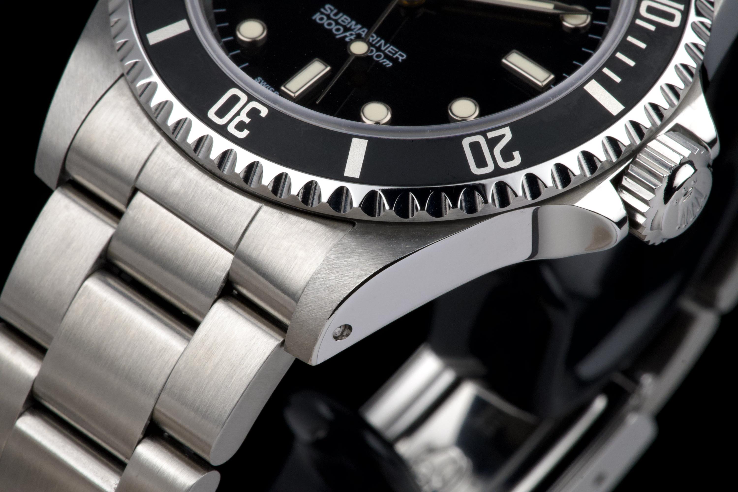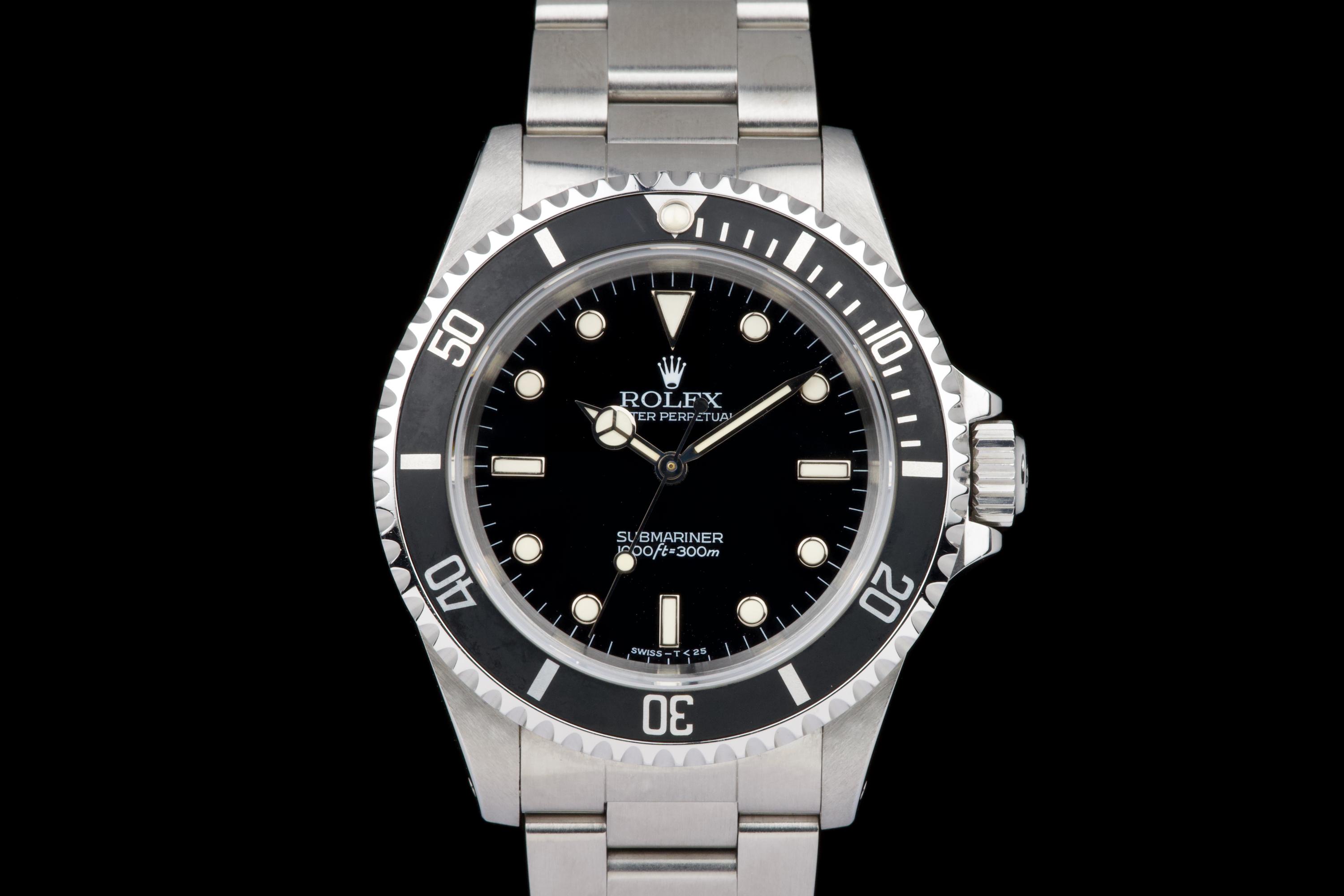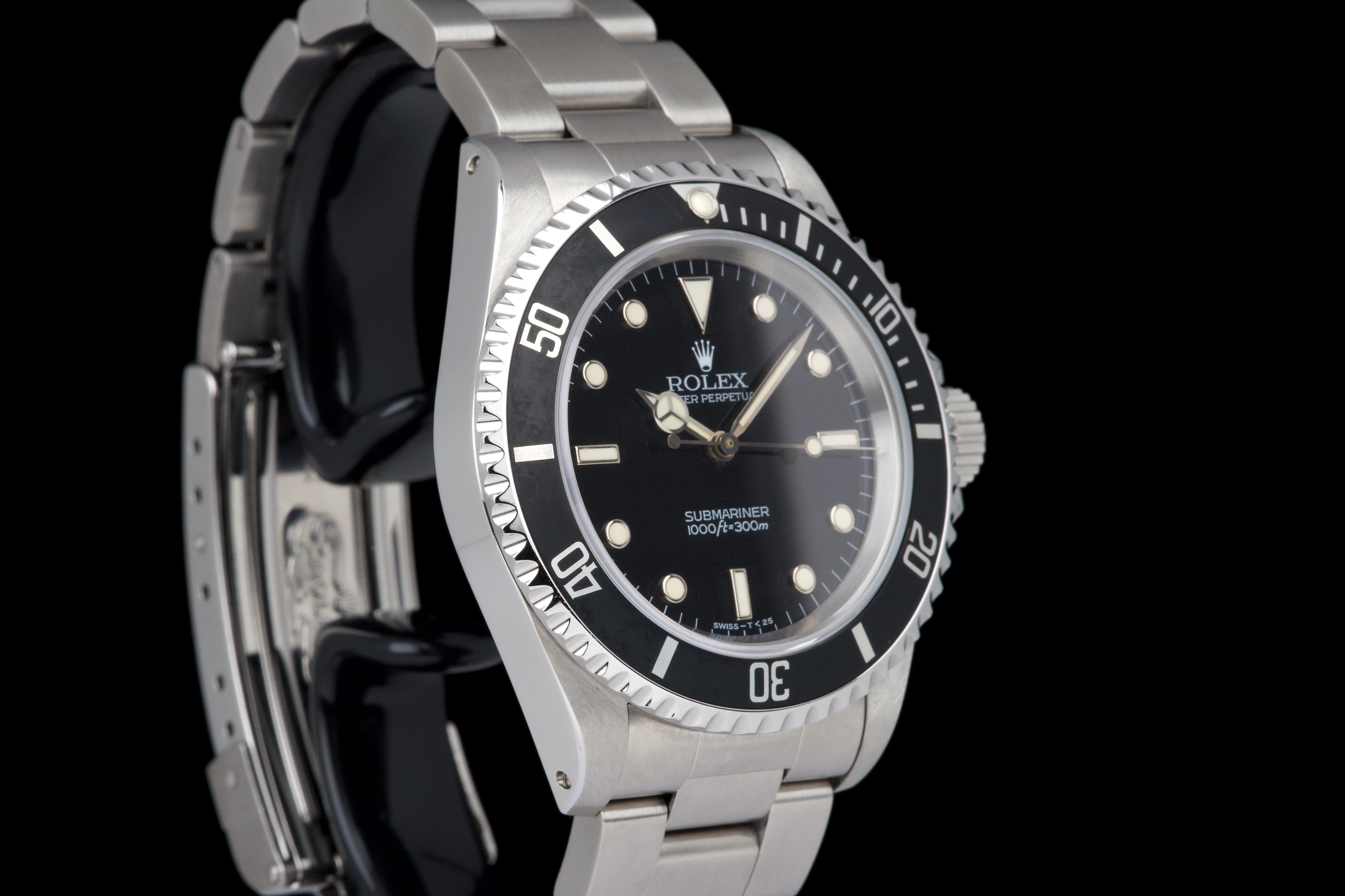 A superb example of the classic Submariner 14060 W Serial, freshly polished and serviced by our watchmaker. The original tritium dial displays a beautiful warm patina on both the hour markers and hands, giving the watch a truly vintage character. The black bezel insert has naturally faded toward a grey tone, adding even more charm to the piece. The original 93150 bracelet with 501B endlinks and claspcode W5 shows almost no stretch, remarkable for a watch from 1995. Delivered as a full set, this is a truly attractive early 14060 — pure, balanced, and full of vintage appeal.
