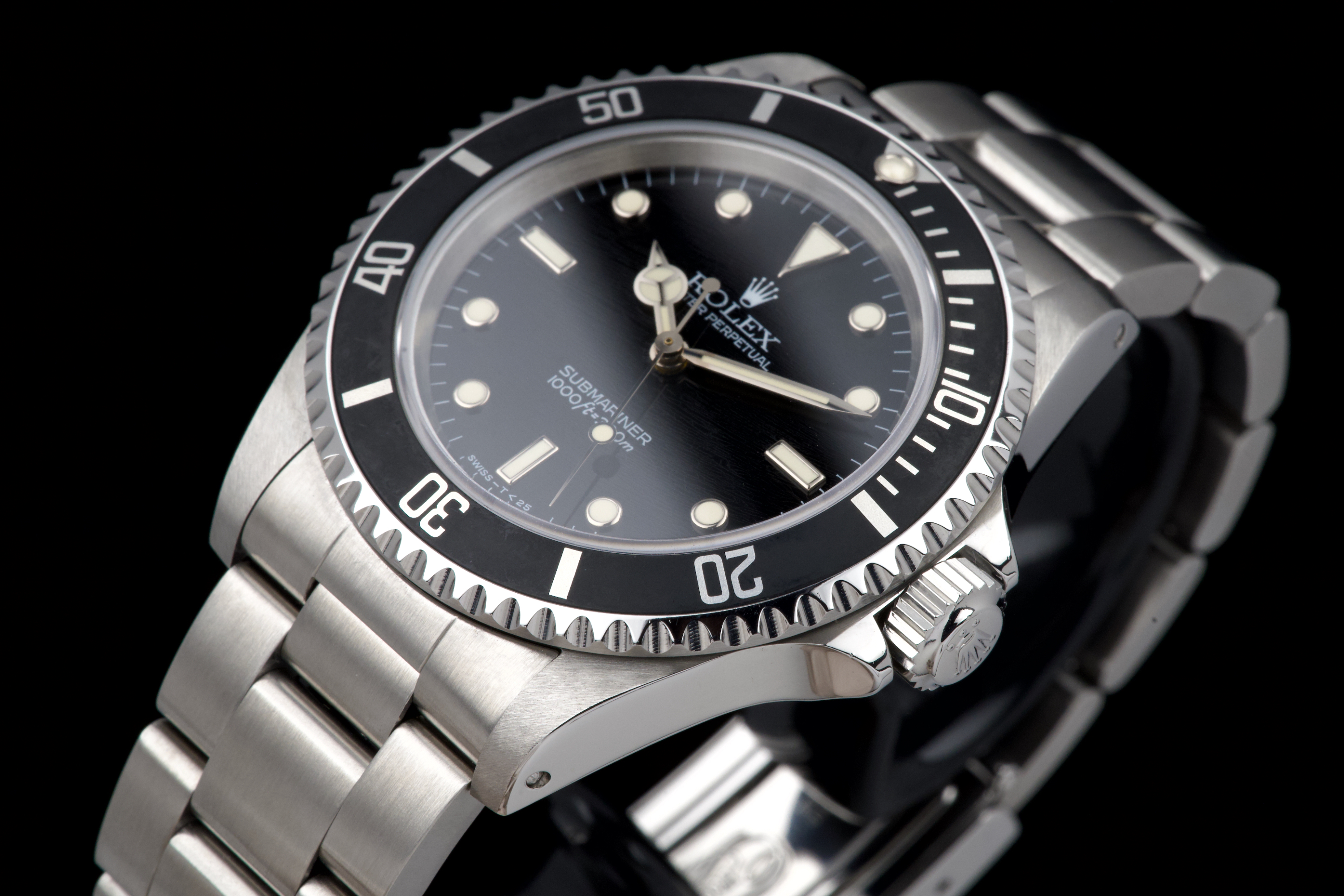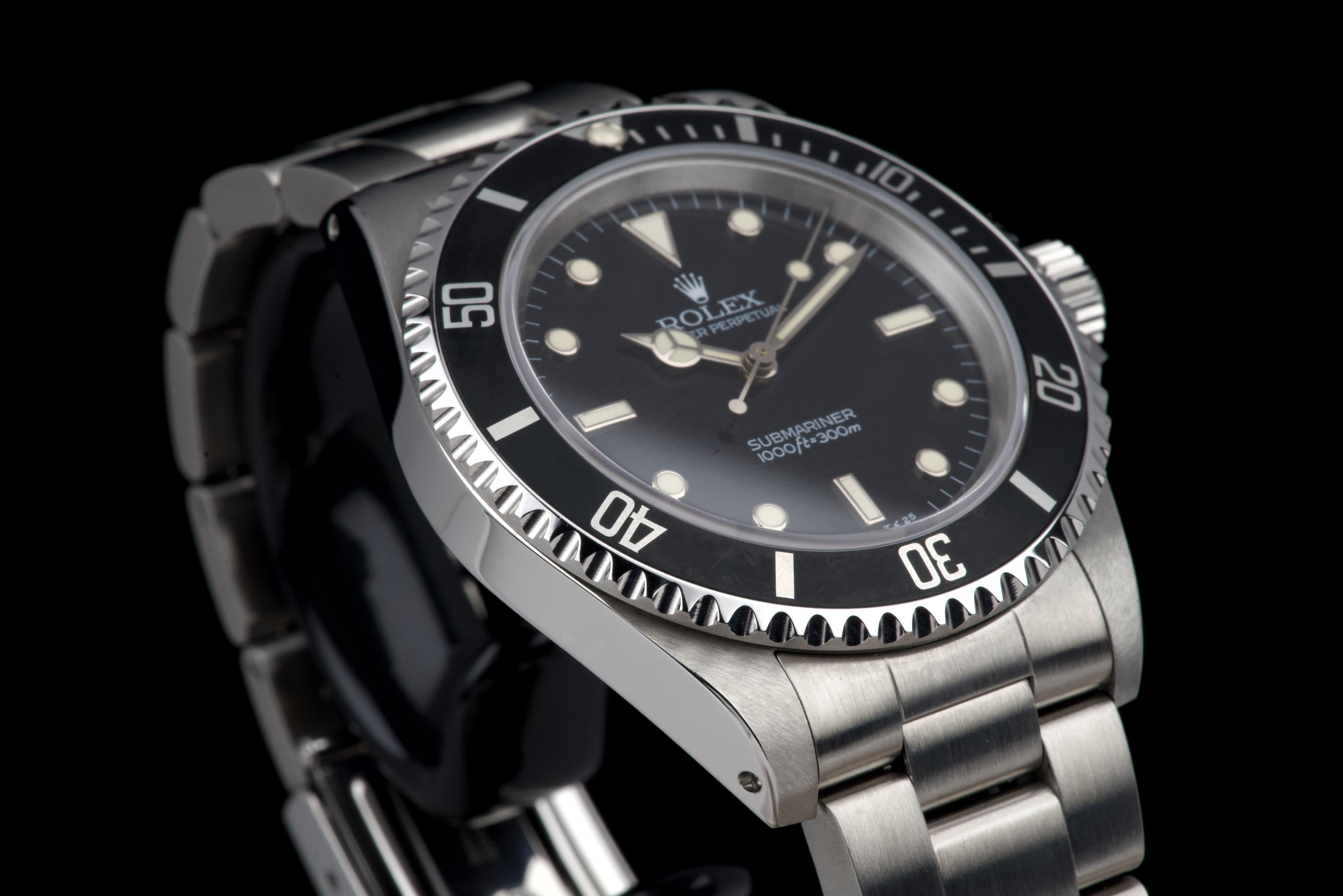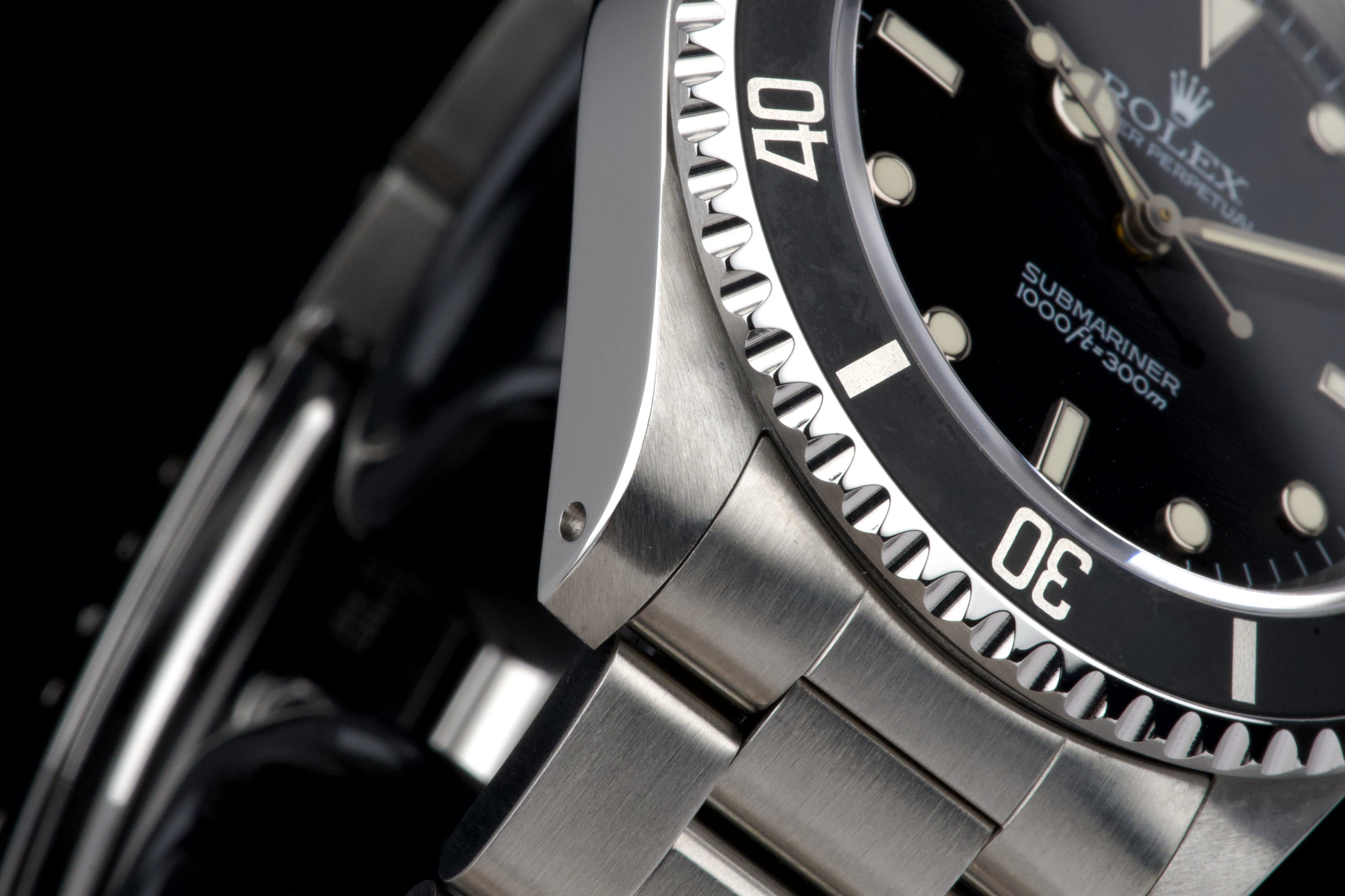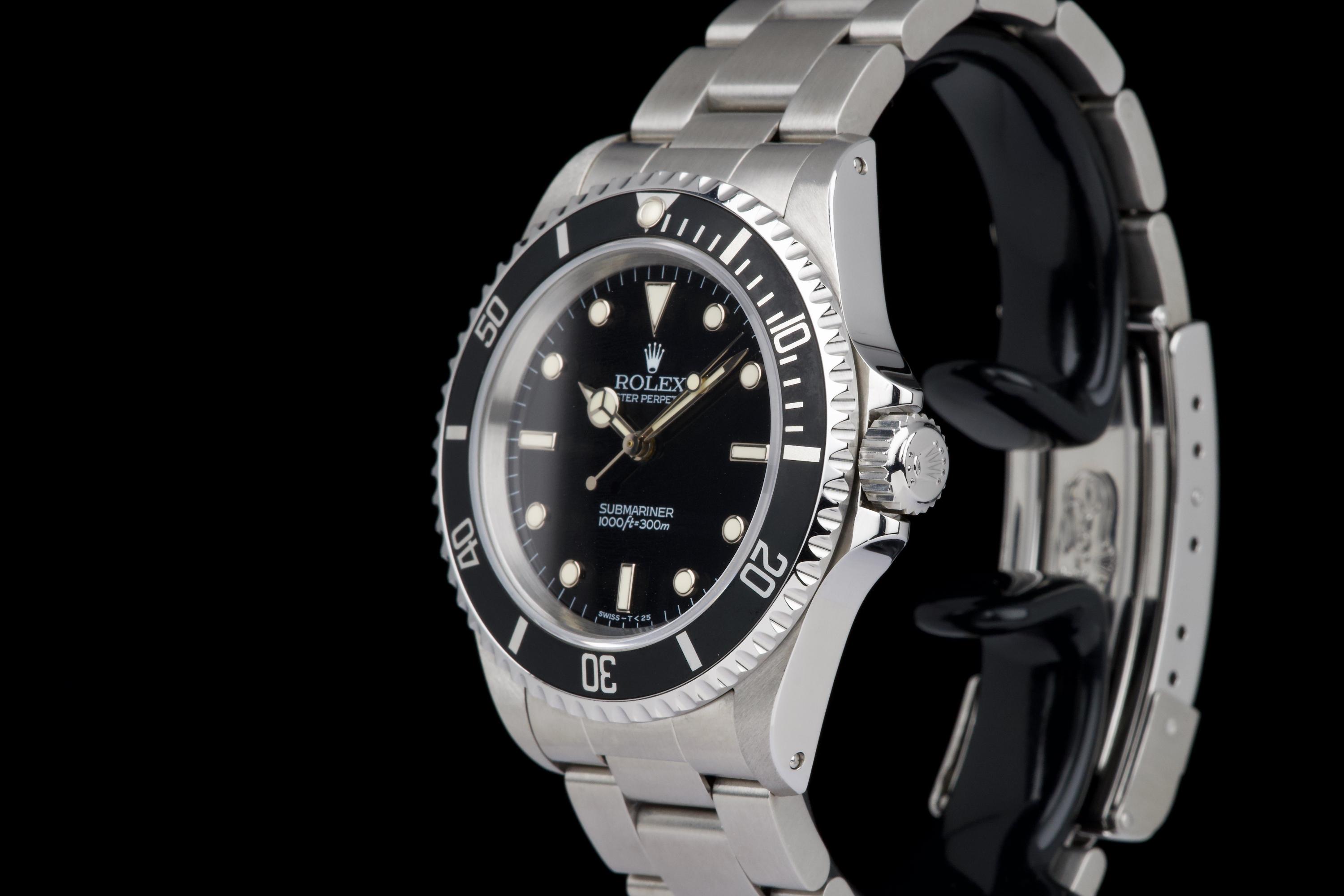 A superb example of the classic Submariner 14060 W Serial, freshly polished and serviced by our watchmaker. The original tritium dial displays a beautiful warm patina on both the hour markers and hands, giving the watch a truly vintage character. The black bezel insert has naturally faded toward a grey tone, adding even more charm to the piece. The original 93150 bracelet with 501B endlinks and claspcode W5 shows almost no stretch, remarkable for a watch from 1995. Delivered as a full set, this is a truly attractive early 14060 — pure, balanced, and full of vintage appeal.