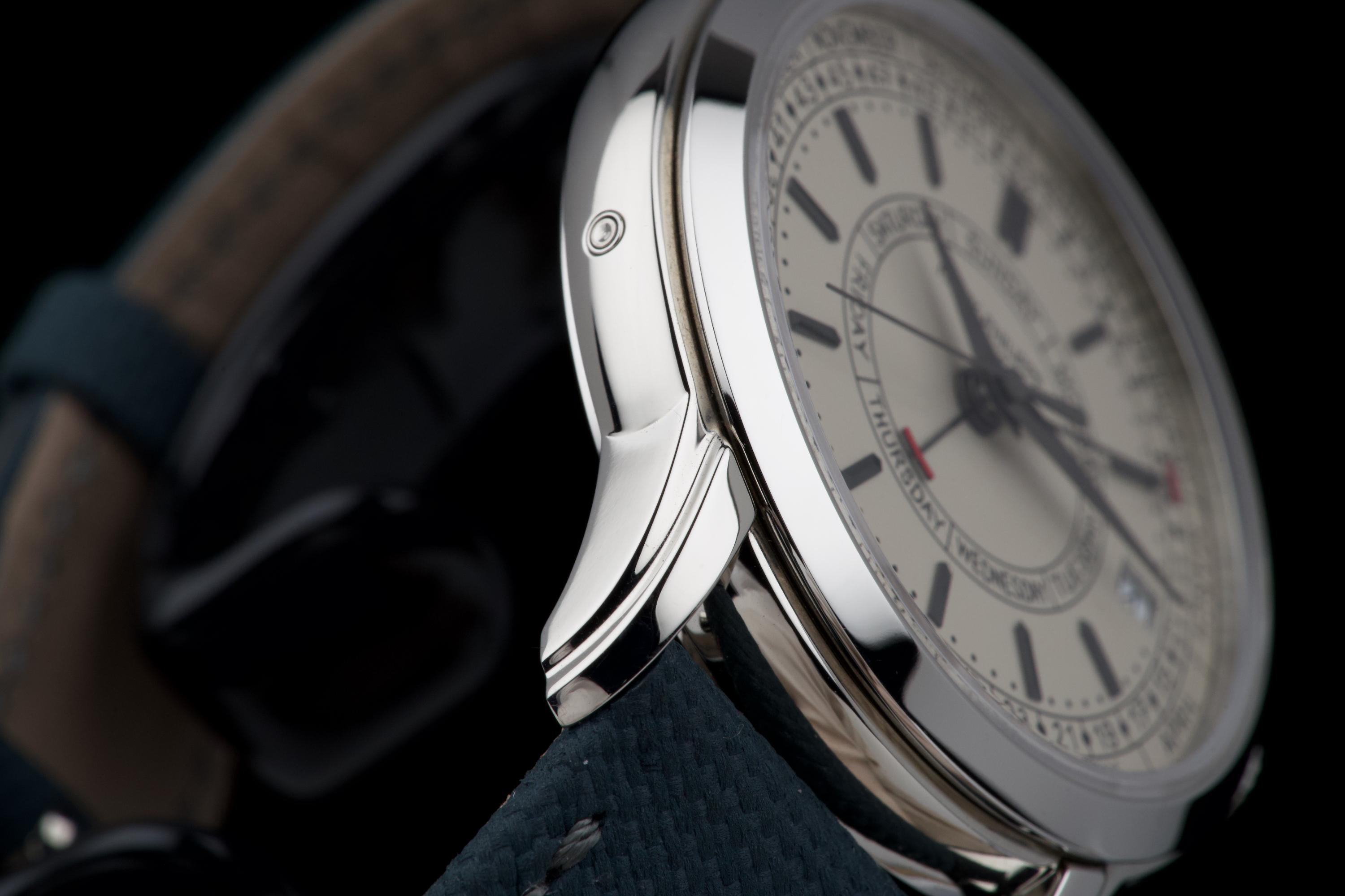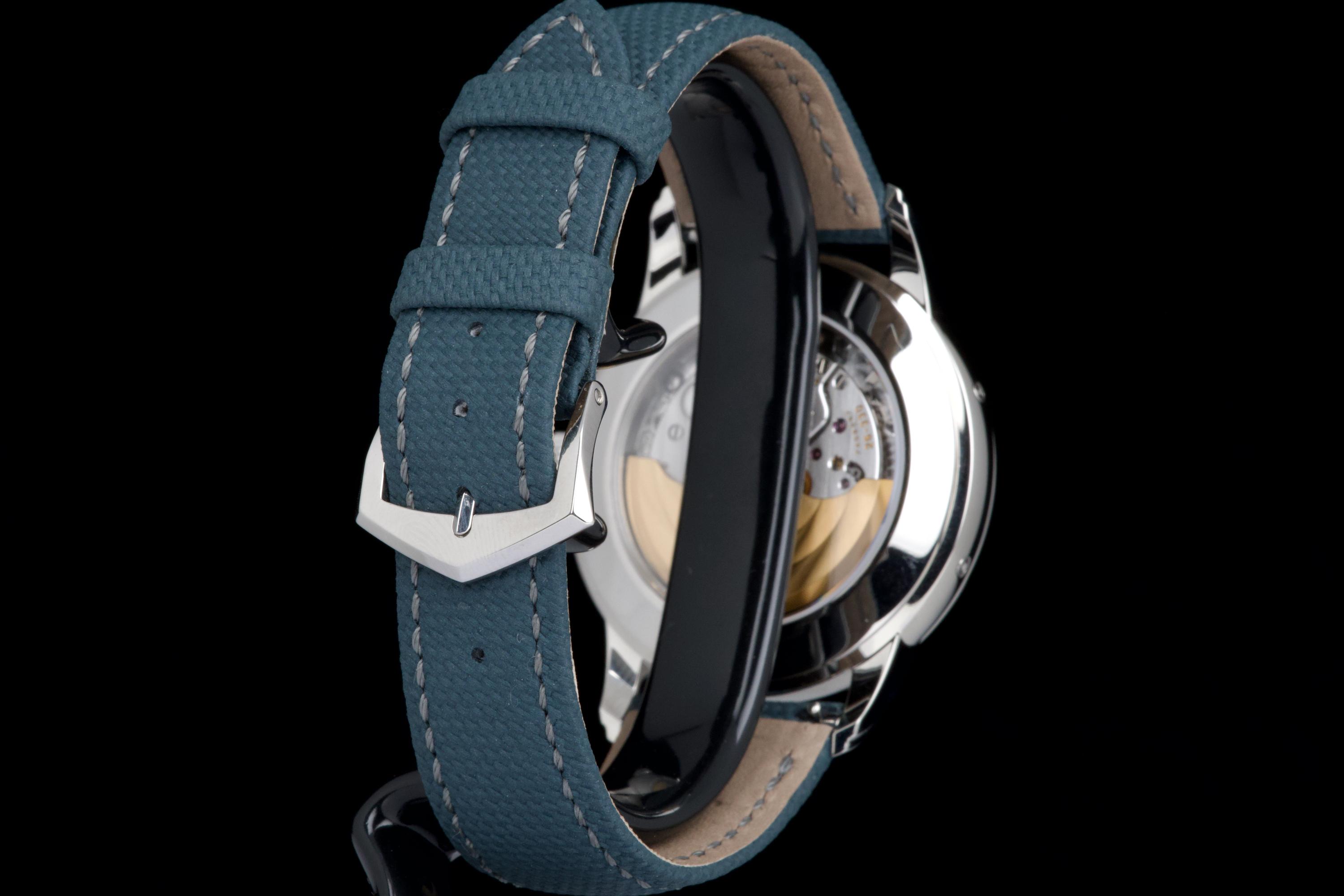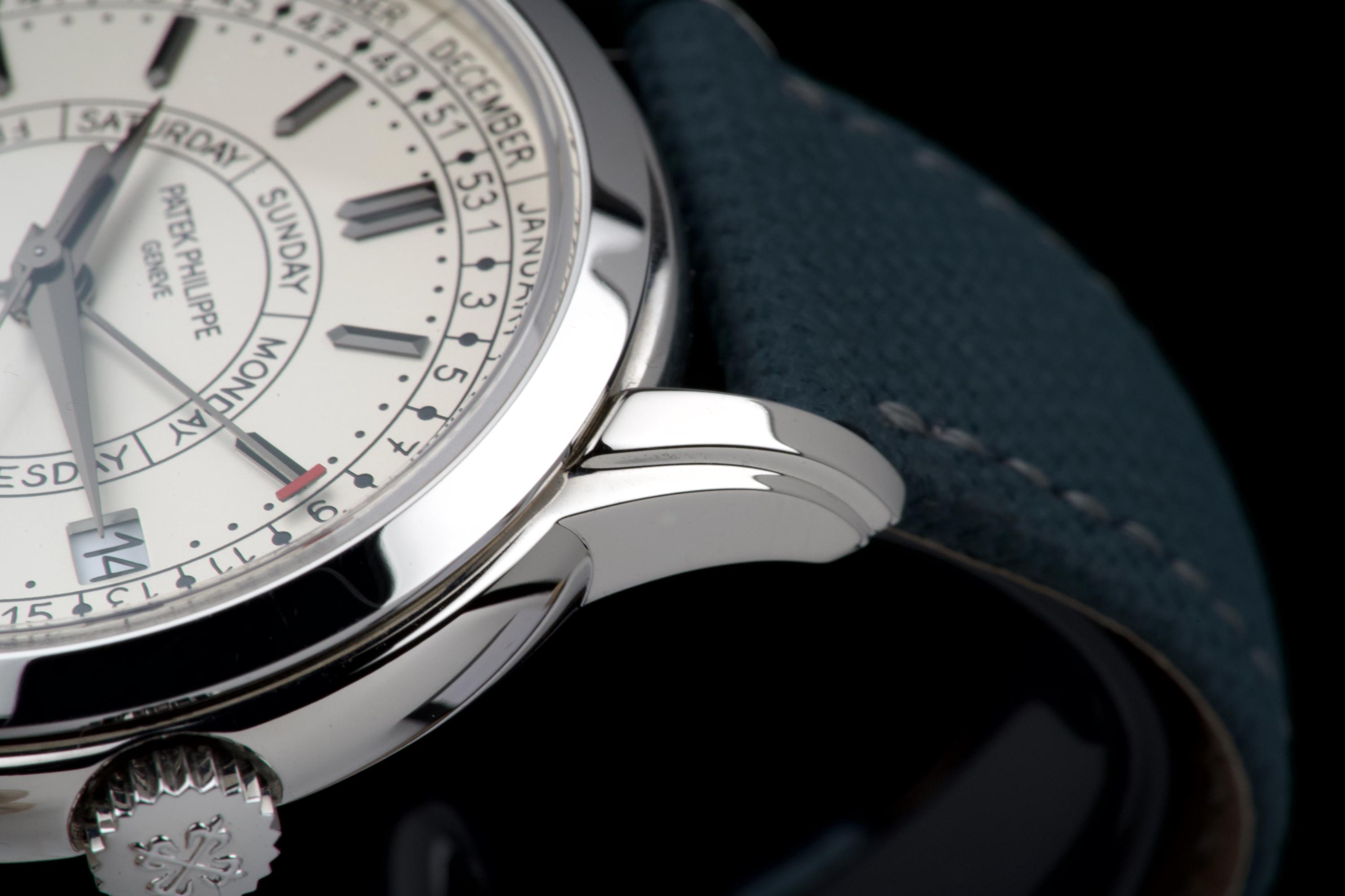 A superb single-owner example of the Patek Philippe Weekly Calendar 5212A, originally sold in Switzerland in 2022. The watch is in mint, close-to-new condition and comes complete with its full set. This elegant steel model features the distinctive silver opaline dial with handwritten-style day and week indications — a signature of the 5212. Powered by the automatic caliber 26-330 S C J SE, combining weekly calendar functionality with Patek Philippe’s refined finishing and reliability. The watch comes with its original beige calf leather strap, as well as an additional blue Patek Philippe fabric strap. A beautiful, fresh example of one of Patek Philippe’s most charismatic modern steel complications.