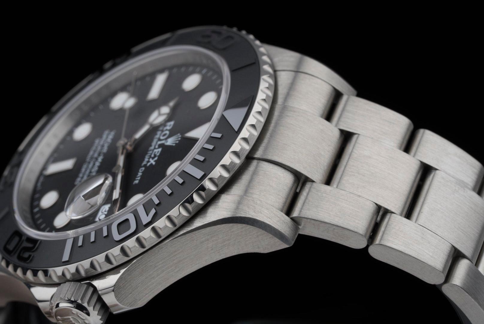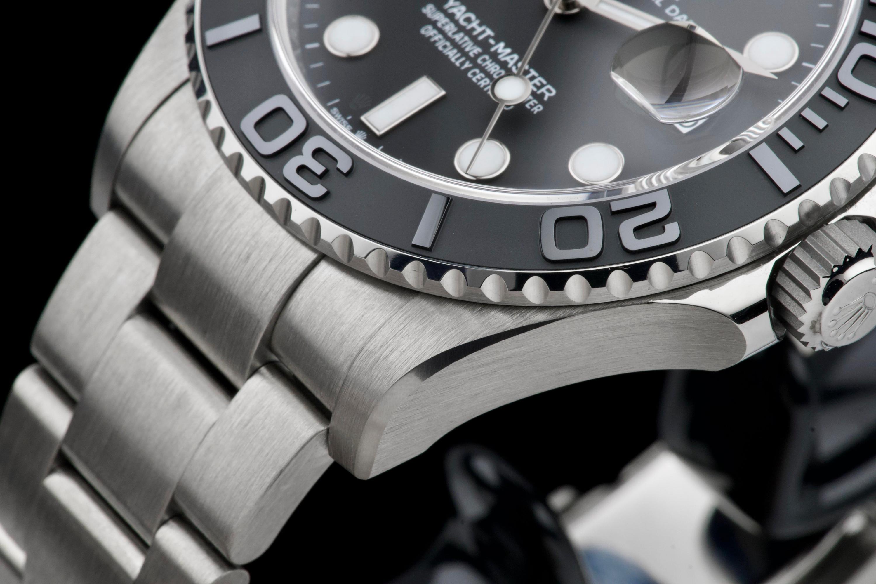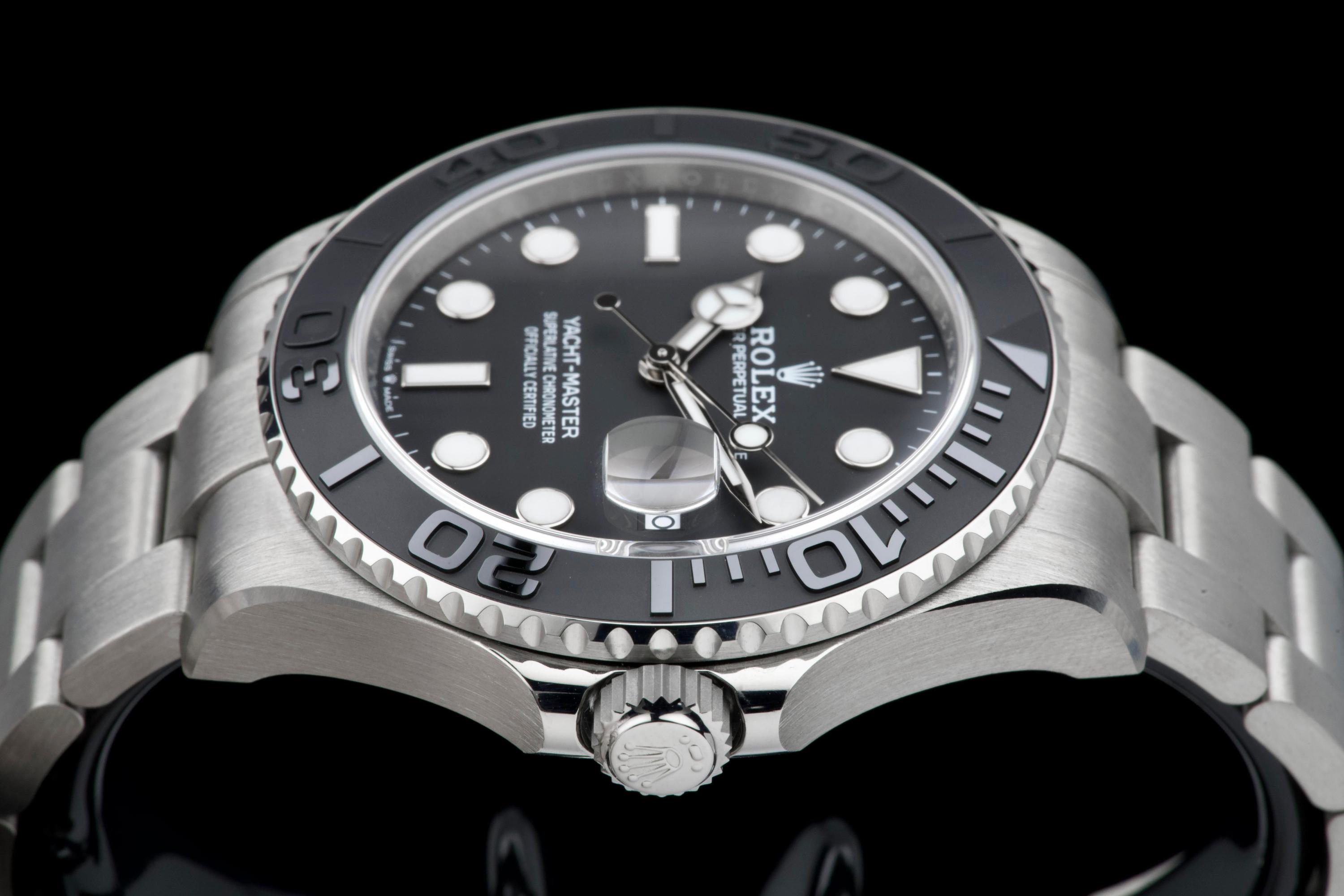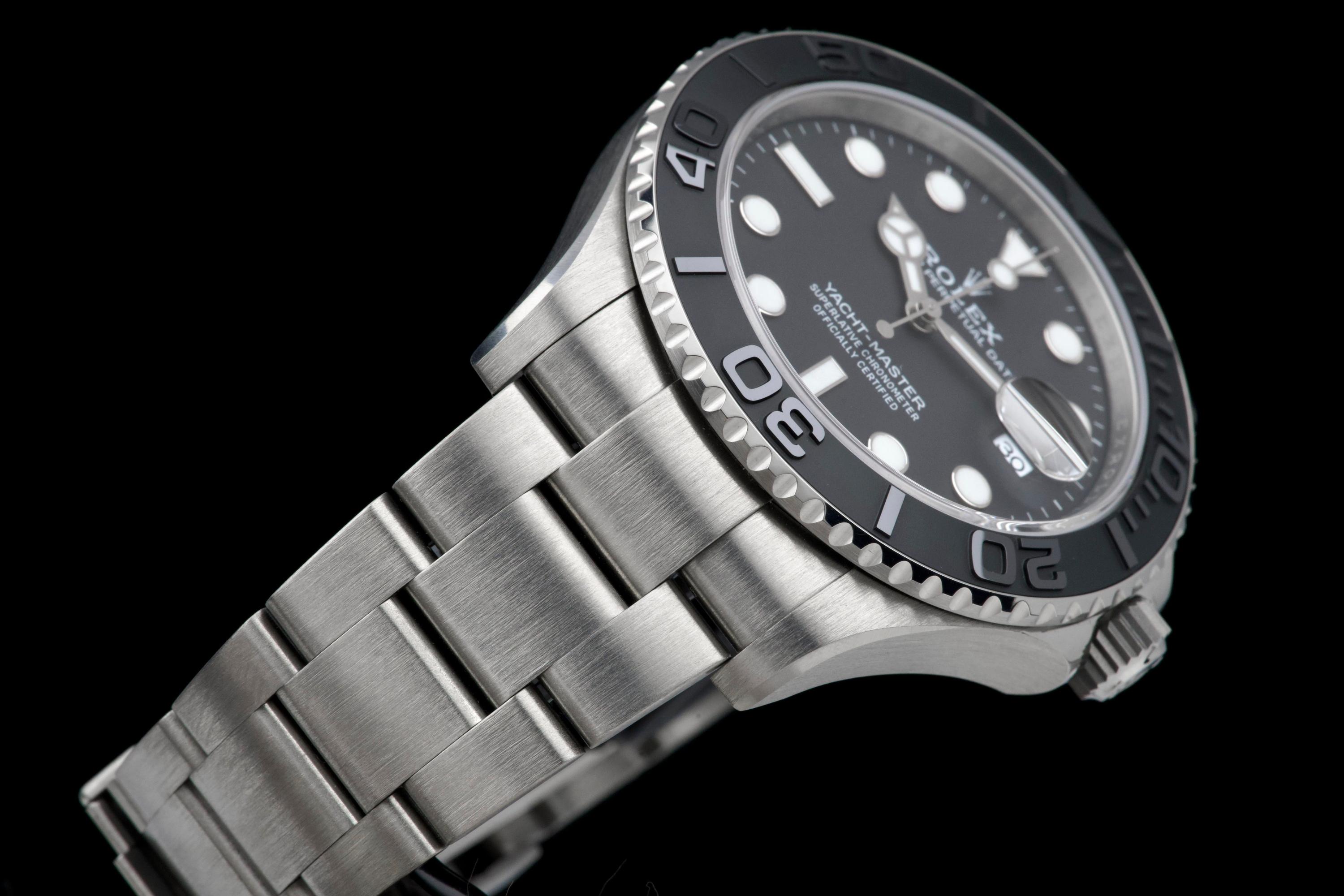 Presented here is an exceptional example of contemporary Rolex innovation: the Yacht-Master 42 in titanium, reference 226627. Crafted in RLX titanium, this striking timepiece represents a decisive evolution in the Yacht-Master lineage, combining technical sophistication with understated elegance. Its 42mm case offers a bold yet balanced presence on the wrist, enhanced by the material’s remarkable lightness and resilience. The matte black Cerachrom bezel, paired with the highly legible black dial, underscores the watch’s professional maritime character while maintaining a refined aesthetic. This particular example is offered in unworn condition, retaining its original factory finish, and is accompanied by its full set, including box, papers, and accessories. Dated 2025, it stands as a pristine and highly desirable specimen, appealing equally to the discerning collector and the connoisseur seeking a modern Rolex of rare substance. A compelling opportunity to acquire one of the most sought-after contemporary sports watches in outstanding condition.